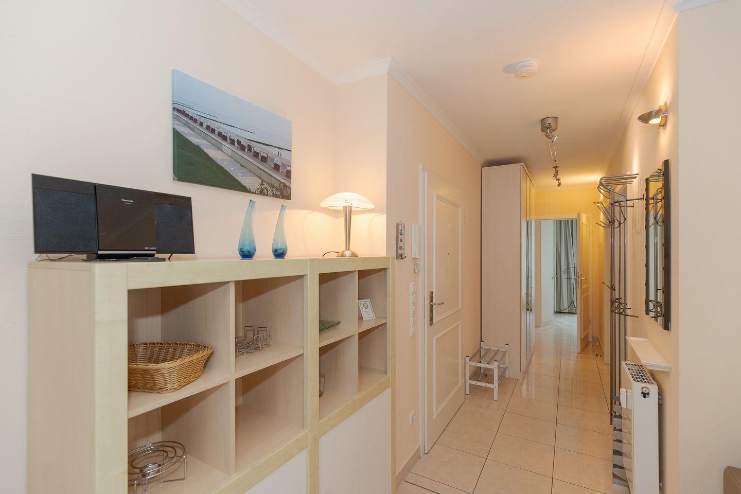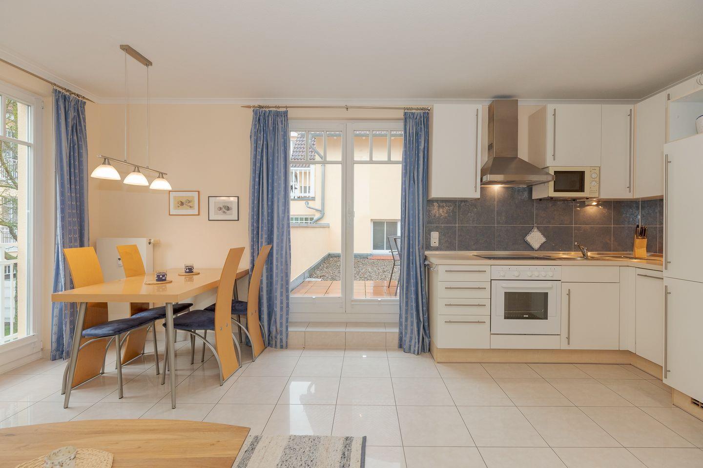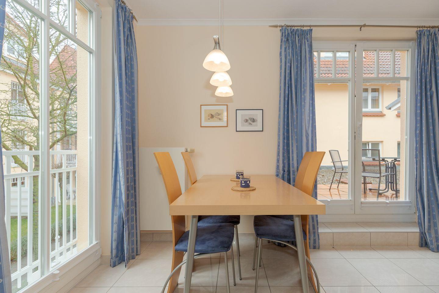 Das allergikerfreundlich eingerichtete Nichtraucher-Apartment mit eingeschränktem Meerblick beinhaltet zwei Schlafzimmer, ausgestattet mit einem Boxspring- bzw. einem Etagenbett. Das Kinderzimmer hat einen eigenen Balkon mit Blick zur Ostsee. Im Wohnbereich befinden sich eine TV-HiFi-Anlage mit Flachbildschirm, DVD-Player, Radio und CD-Player. Bücher und Spiele stehen euch ebenfalls zur Verfügung.