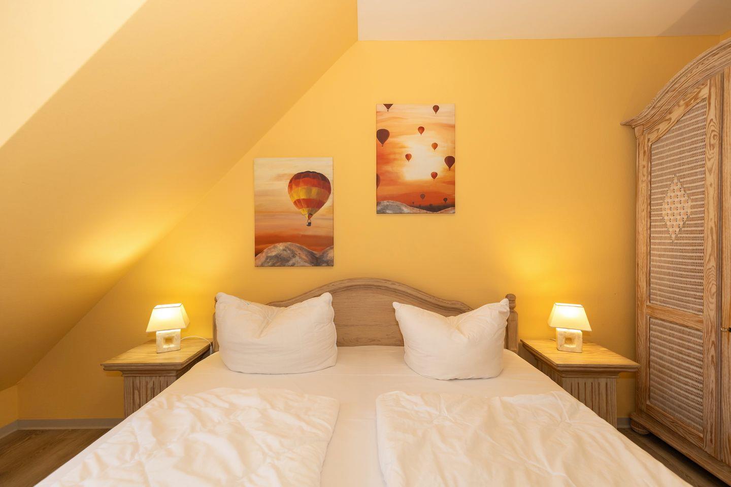 Das gemütliche Apartment verfügt über zwei Schlafzimmer mit einem Doppelbett bzw. zwei Einzelbetten und einer zusätzlichen Couchliege im Kinderzimmer. Während das Elternschlafzimmer Richtung Osten liegt, weist das Kinderschlafzimmer zum ruhigen Innenhof. Der Balkon des Apartments bietet euch einen wunderschönen Blick über das Meer und den Yachthafen.