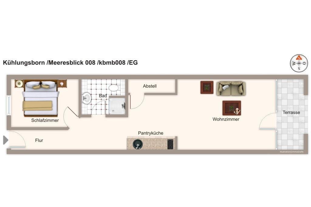 Modernes 2-Zimmer-Apartment mit überdachter Ost-Terrasse in bester Strandlage in Kühlungsborn.
