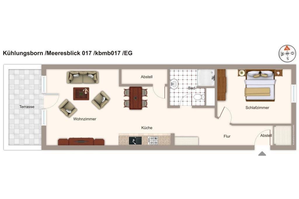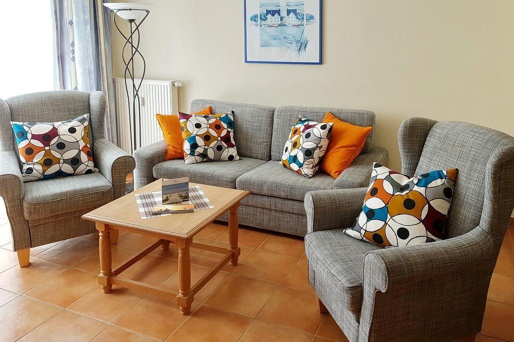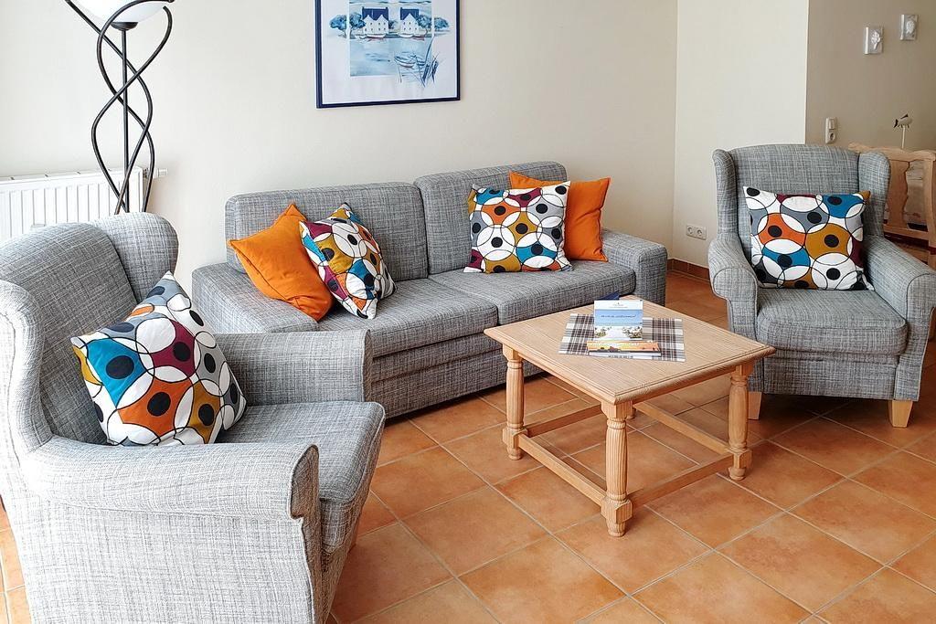 Das gemütliche Nichtraucher-Apartment verfügt über kostenfreies WLAN eine voll ausgestattete offene Küche mit Geschirrspüler, Backofen, Wasserkocher, Kaffeemaschine, Toaster und Tiefkühlfach. Der kombinierte Wohn- und Essbereich verfügt über eine TV-HiFi-Anlage mit Flachbild-TV und DVD-Player. Sowohl der Esstisch, als auch der behagliche Sitzbereich bieten genügend Platz, um schöne Stunden beim Frühstück oder nach einem ereignisreichen Tag am Strand zu verbringen. Das separate Schlafzimmer ist ausgestattet mit einem großen Doppelbett (2 x 0,90 x 2,00). Das Schlafzimmerfenster liegt zum Atrium, dem begrünten, überdachten Innenhof des Gebäudes. Die Terrasse in westlicher Lage ist vom Wohn-/ Essbereich zugänglich. Überdies verfügt die Wohnung über ein Bügeleisen und ein Bügelbrett. Im Badezimmer liegt ein Föhn für euch bereit.