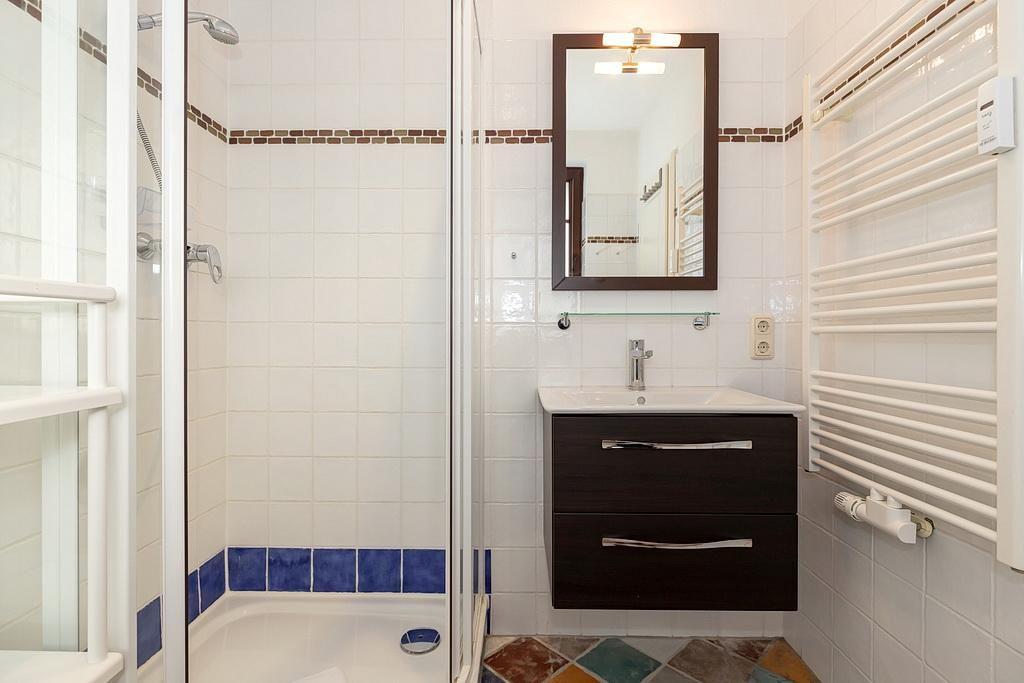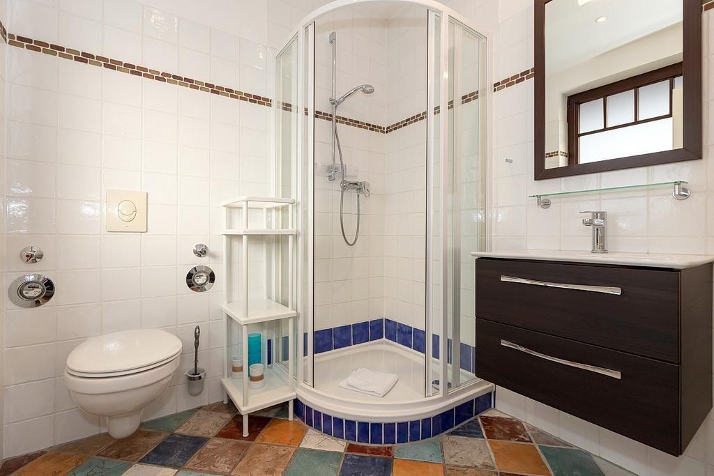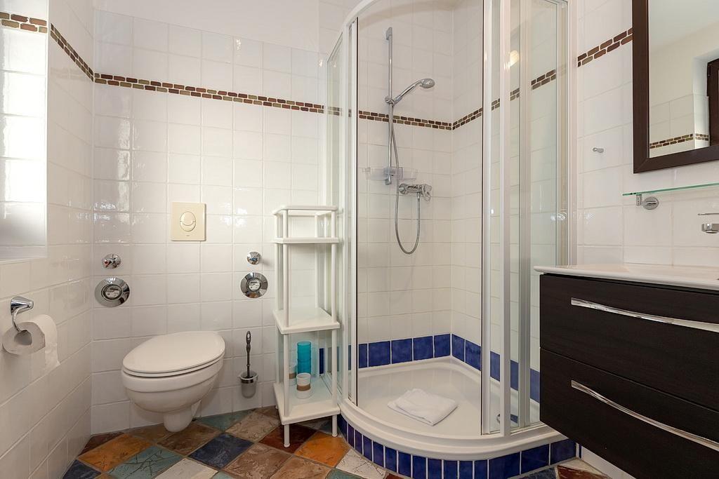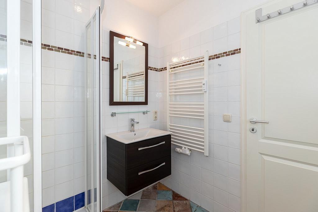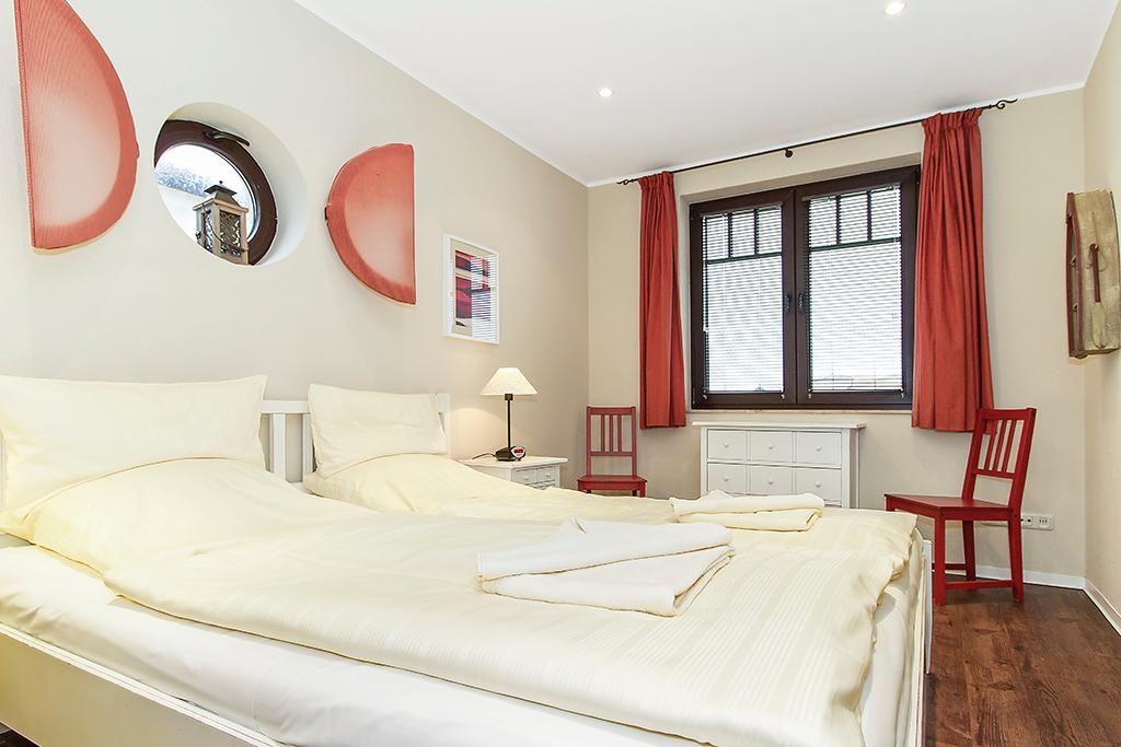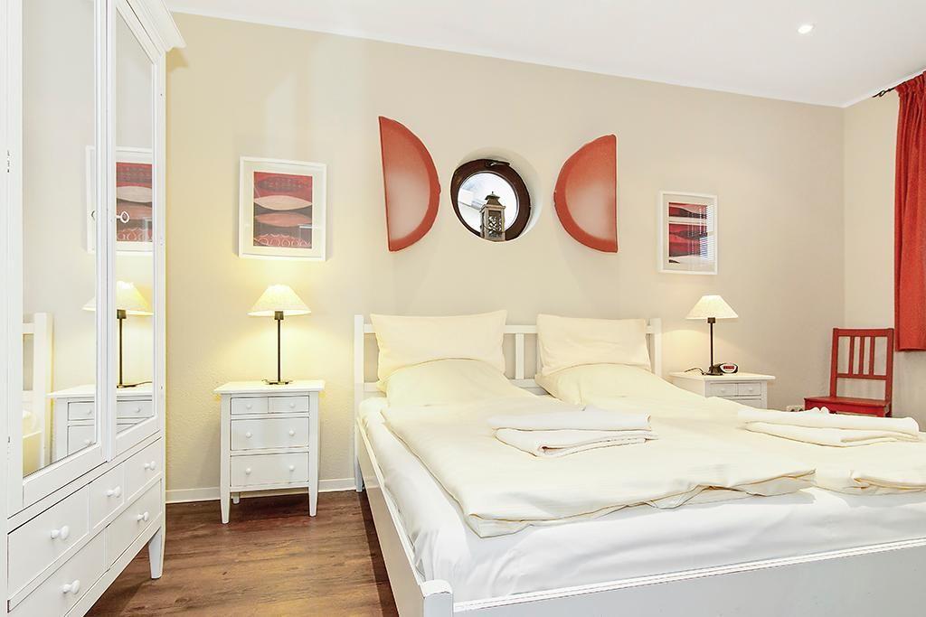 Die hochwertige Ferienwohnung mit Duschbad verfügt über einen Schlafbereich mit Doppelbett und ein Wohnzimmer mit Einzelschlafcouch (1,00 x 1,80 m)