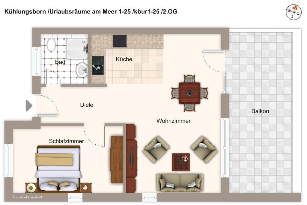 Die Urlaubsräume am Meer, eine Apartment-Anlage in Kühlungsborn, verfügt über individuell gestaltete Ferienwohnungen. Das 2-Zimmer-Penthouse bietet 2 Personen Gelegenheit, auf 56 qm und einem Balkon mit Blick zum Hafen zu entspannen und die Ostsee zu genießen.