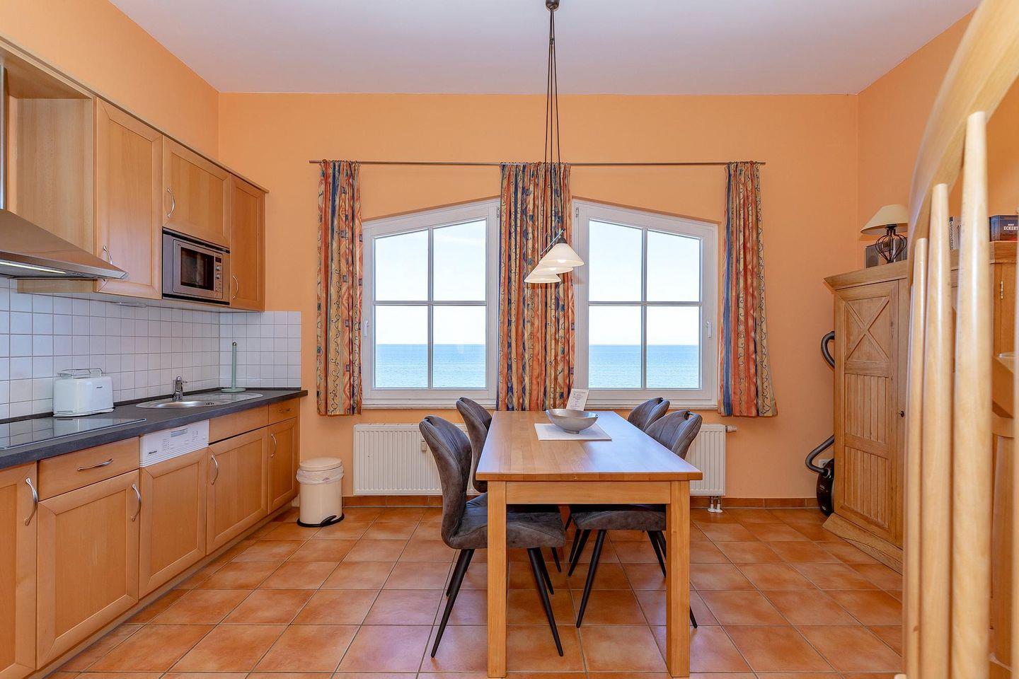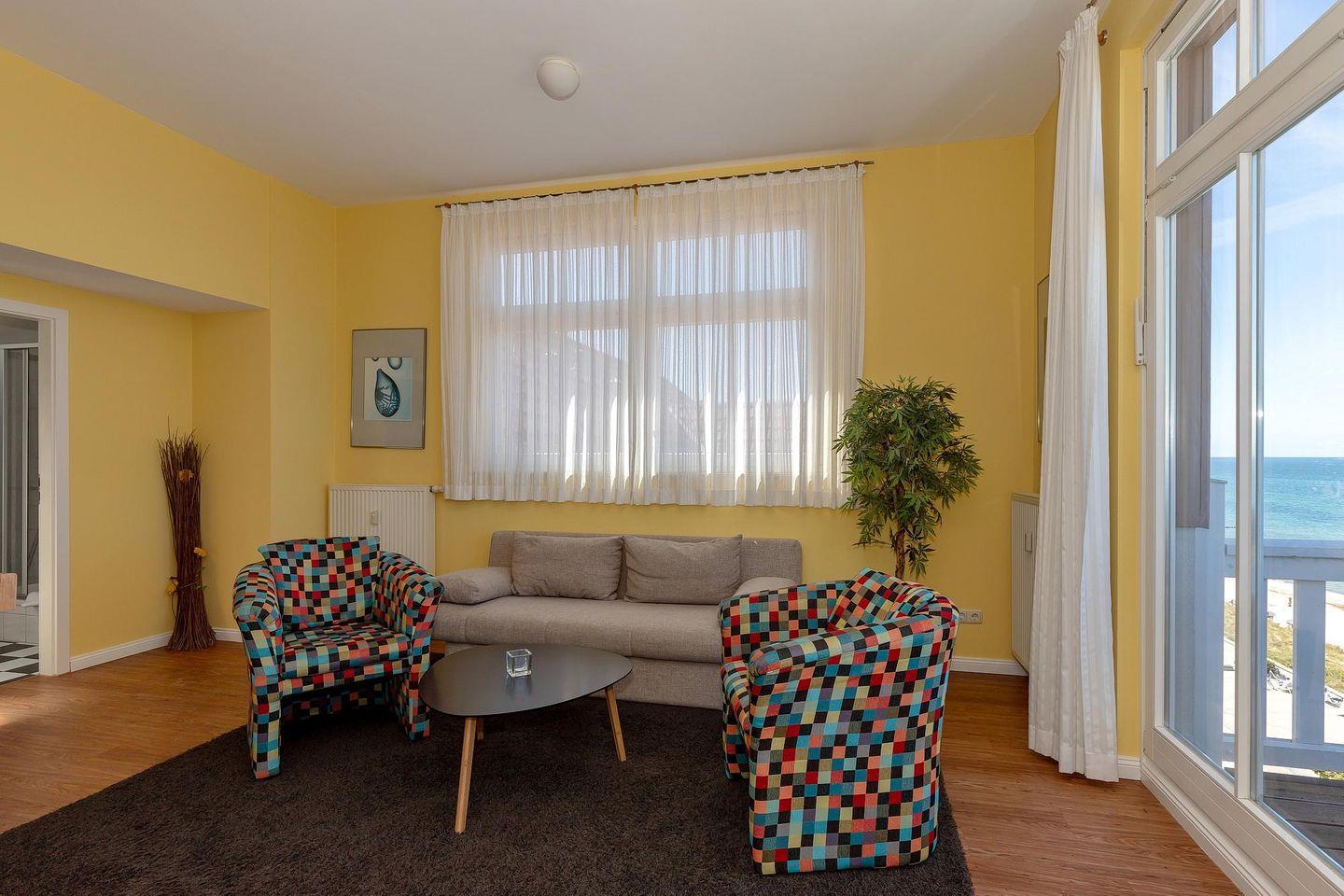 Die 84 m² große 3-Zimmer-Turmwohnung erstreckt sich über drei Etagen und ist für bis zu 4 Personen geeignet. Besonders hervorzuheben ist die direkte Strandlage der Apartmentanlage und der großartige Meerblick aus dem Apartment und von dem nach Norden gelegenen Balkon auf die Ostsee.