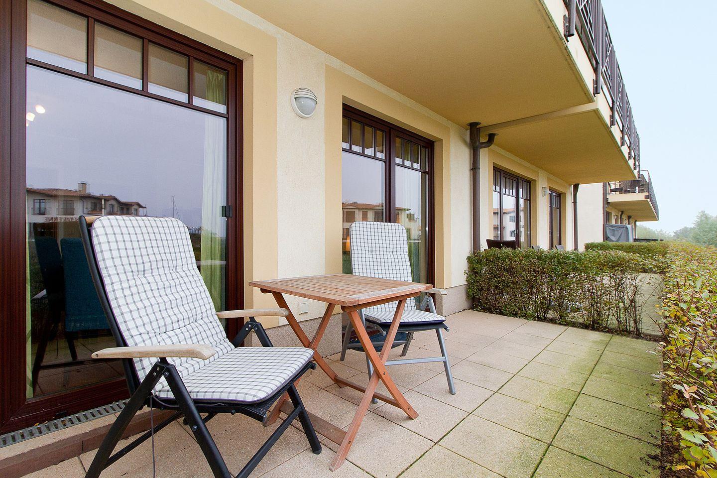 Das Apartment mit Terrasse befindet sich im Erdgeschoss der Ferienanlage - in unmittelbarer Yachthafen-Nähe.