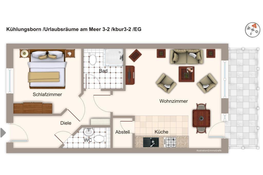 Hochwertig ausgestattete Apartments bietet euch die Ferienwohnanlage Urlaubsräume am Meer in Kühlungsborn. In unmittelbarer Yachthafennähe befindet sich das 2-Zimmer-Apartment mit 53 qm und einer Terrasse, die für 2 Personen geeignet ist.
