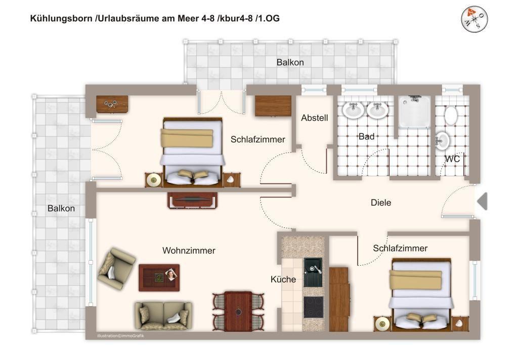 Die Apartment-Anlage Urlaubsräume am Meer bietet euch hochwertige Ferienwohnungen in unmittelbarer Nähe zum Yachthafen in Kühlungsborn. Das Apartment mit 3 Zimmern und 72 qm ist für 4 Personen geeignet und verfügt über zwei Balkone mit teilweisem Meerblick.