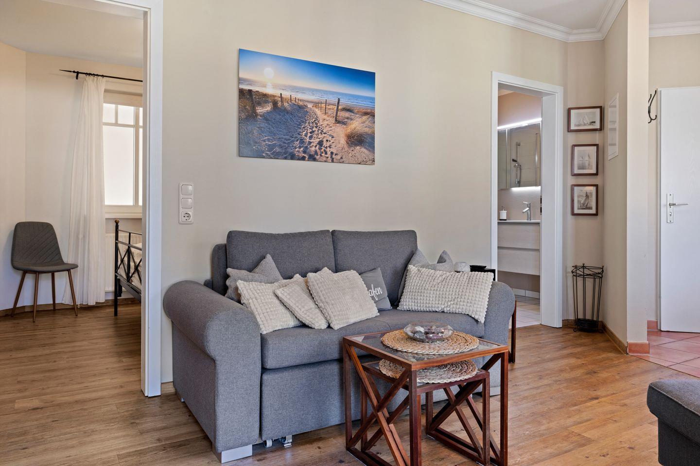 Das schöne Nichtraucher-Apartment ist mit 38 qm optimal für 2 Personen geeignet. Im Schlafzimmer befindet sich ein Doppelbett. Der WLAN Anschluss steht euch kostenfrei zur Verfügung.