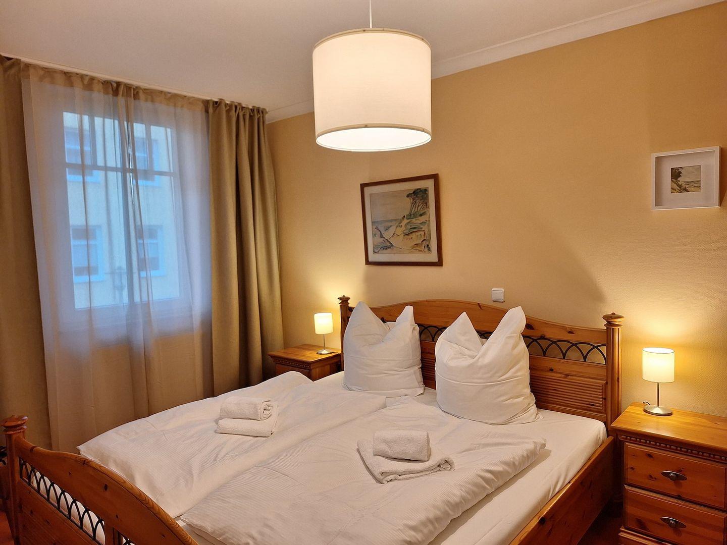 Das gemütliche Nichtraucher-Apartment verfügt über eine voll ausgestattete offene Küche mit einer Mikrowelle inklusive Grillfunktion, einem Backofen, einem Toaster, einer Kaffeemaschine, einem Wasserkocher und einer Geschirrspülmaschine. Im kombinierten Wohn- und Essbereich steht euch eine HiFi-Anlage, ein Flachbild-TV und eine Doppelschlafcouch zur Verfügung. Überdies ist das Apartment mit einem Minisafe und einem Bügeleisen ausgestattet. Sowohl der Esstisch, als auch der behagliche Sitzbereich bieten genügend Platz, um schöne Stunden beim Frühstück oder nach einem ereignisreichen Tag am Strand zu verbringen. Das separate Schlafzimmer ist ausgestattet mit einem großen Doppelbett (2 x 0,90 x 2,00). Ein Kinderbett kann gegen Entgelt aufgestellt werden und auf Wunsch könnt ihr gerne einen Hochstuhl hinzubuchen. Auf dem nördlich gelegenen Balkon habt ihr teilweise einen Blick auf die nahegelegene Ostsee, hier genießt ihr den ganzen Tag das milde Klima und die Sonne. Der WLAN Anschluss steht euch kostenfrei zur Verfügung.