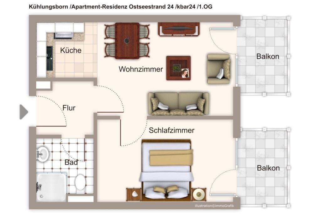 Die Ferienwohnungsanlage "Apartment-Residenz Ostseestrand" in Kühlungsborn bietet Apartments in unmittelbarer Strandnähe. Mit 2 Zimmern auf 40 qm und mit gleich zwei Balkonen mit Blick Richtung Süd-West genießen bis zu 4 Personen ihren Ostseeurlaub.