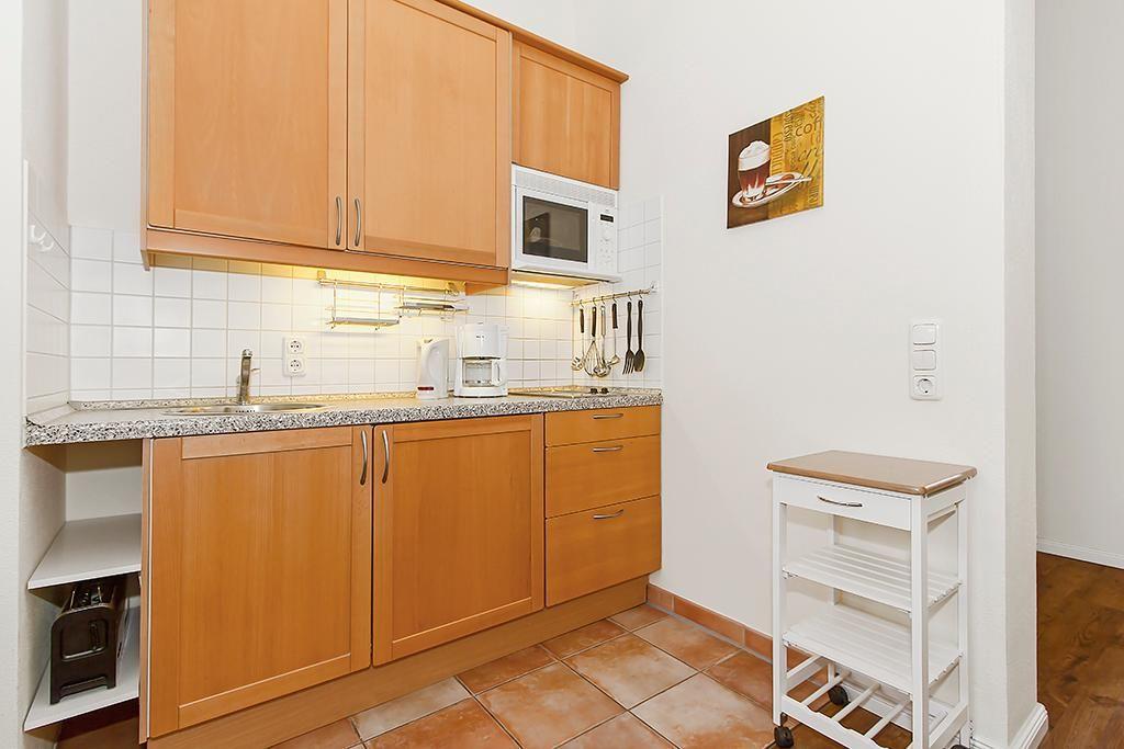 Eine voll ausgestattete offene Küche mit Mikrowelle inklusive Grillfunktion ist ebenso im Apartment vorhanden wie eine TV-HiFi-Anlage mit Flachbild-TV, ein Föhn und Bügeleisen mit Bügelbrett.