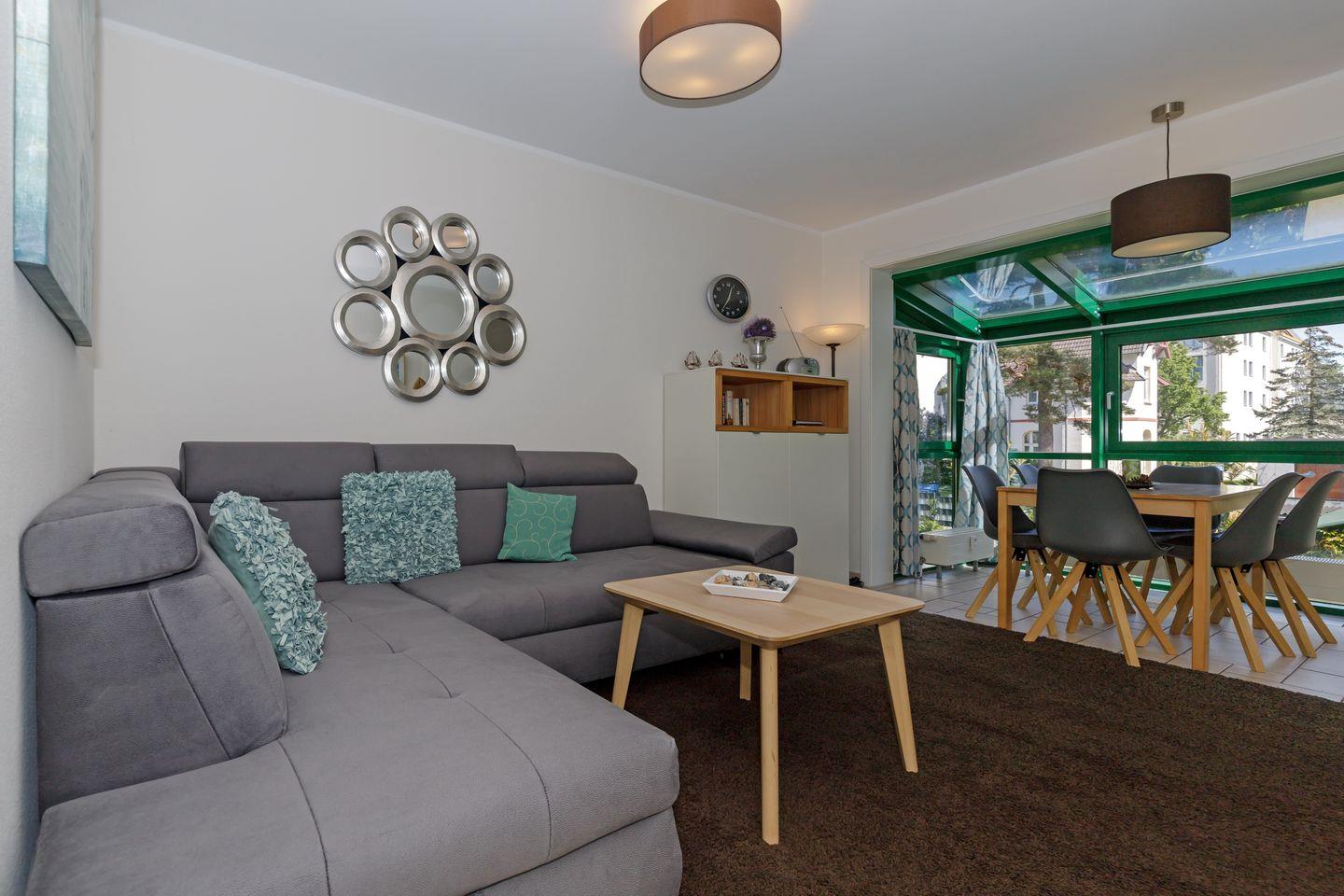 Strandnahe Ferienwohnung mit Südbalkon und Blick auf den idyllischen Stadtwald in Kühlungsborn.
