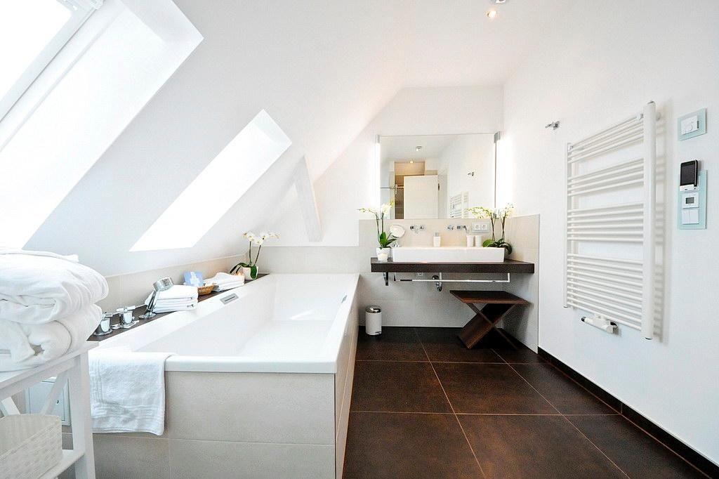 Genießt den Komfort von zwei Badezimmern mit jeweils einer großen, begehbaren Dusche sowie Waschtisch mit Föhn und Kosmetikspiegel. Eine große Badewanne lädt zum Entspannen ein.