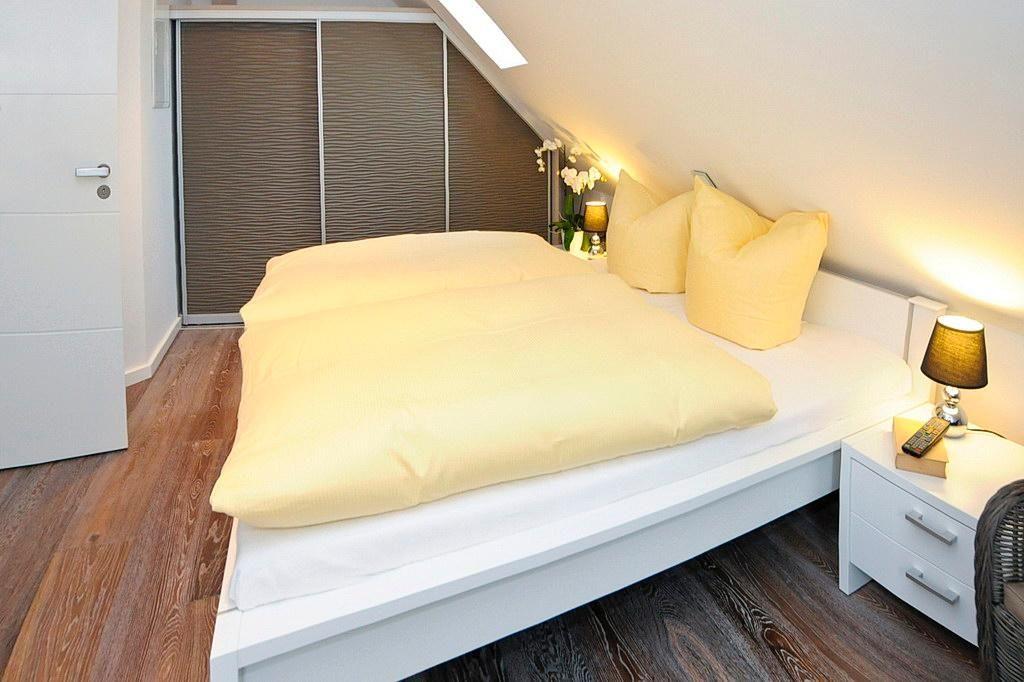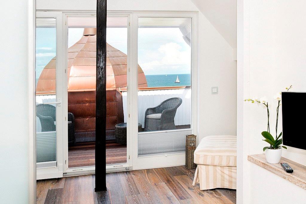 Die 105 m² große 3-Zimmer-Residenz Kriemhild ist für bis zu 4 Personen geeignet. Es handelt sich hier um eine Maisonette-Wohnung, deren verschiedene Ebenen durch eine Treppe miteinander verbunden sind und die über einen traumhaften Meerblick verfügt. Besonders hervorzuheben sind die drei Balkone und die zwei Bäder des Apartments.