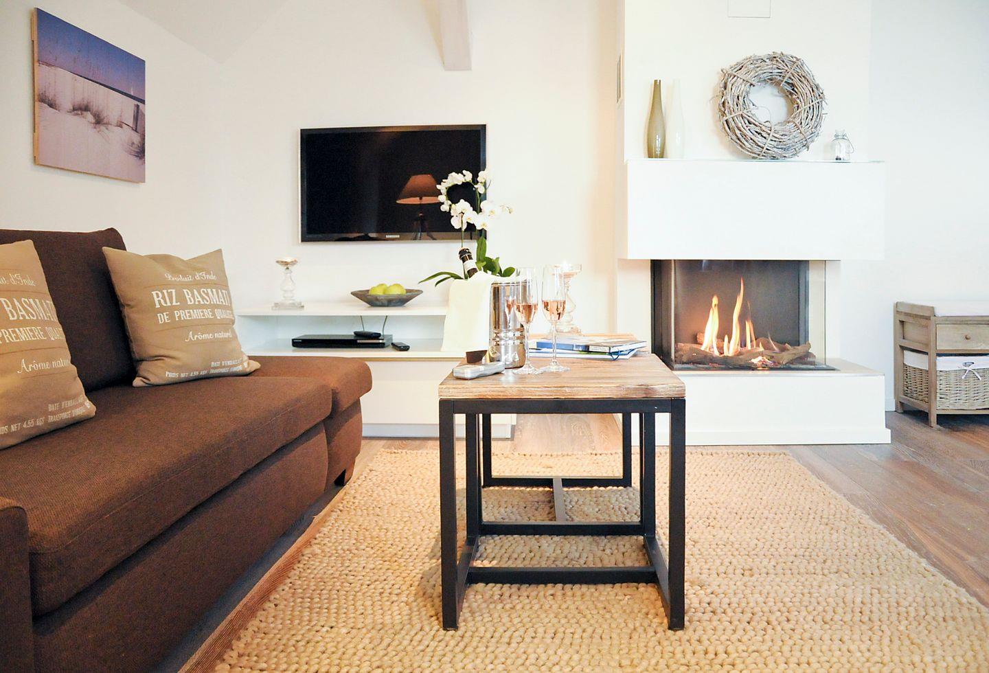 Das Apartment Kriemhild bietet ein überaus gemütliches Wohnzimmer mit Kamin, großem Flatscreen-TV, Blu-ray-Player, HiFi-Anlage und iPod Docking Station. Gesellschaftsspiele und Bücher sind ebenfalls vorhanden.