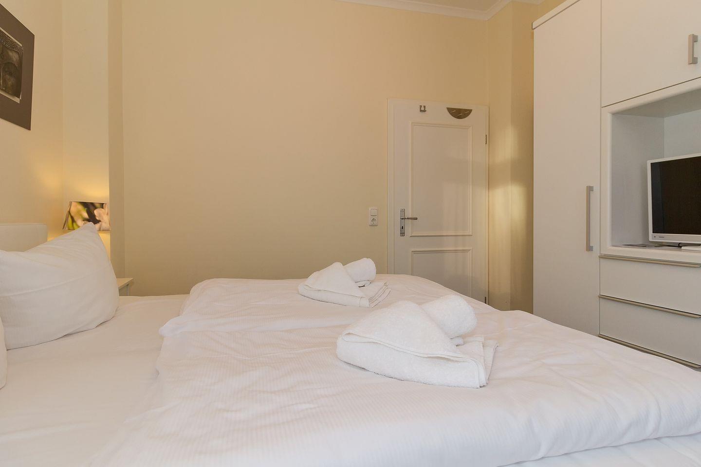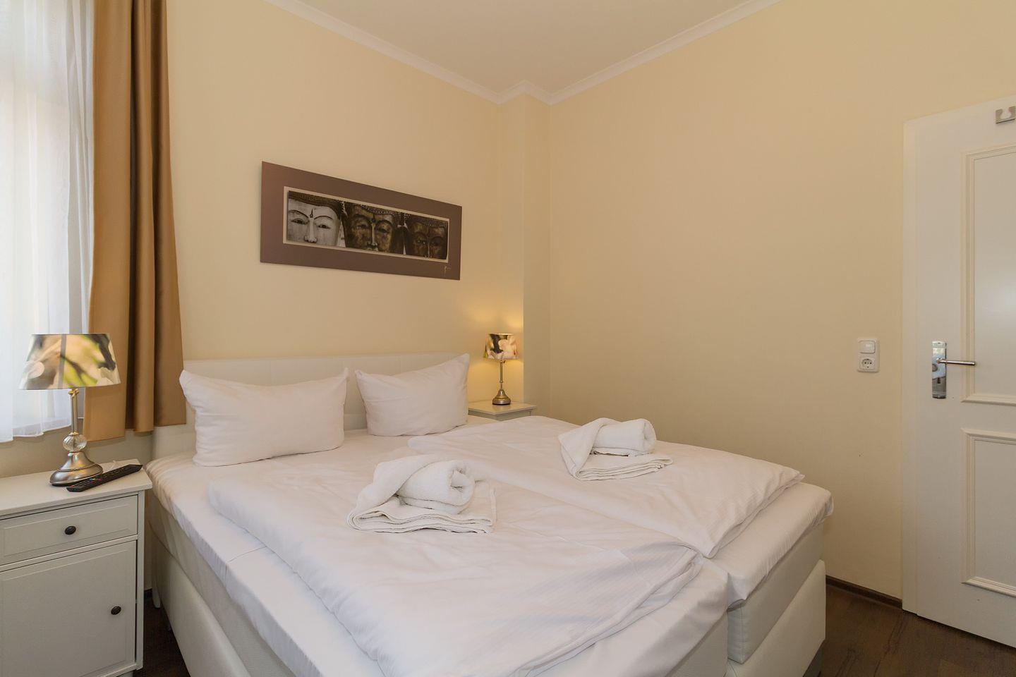 Das Nichtraucher-Apartment ist geschmackvoll und mit Liebe zum Detail eingerichtet. Es verfügt über zwei Schlafzimmer mit einem Boxspringbett bzw. einem Futonbett sowie über Verdunklungsgardinen und einen zweiten Flatscreen-TV, einen Wohnbereich mit Flatscreen-TV und DVD-Player, ein Badezimmer mit Badewanne, separater Dusche und Föhn sowie über einen schönen, überdachten Südbalkon mit Gartenmöbeln.