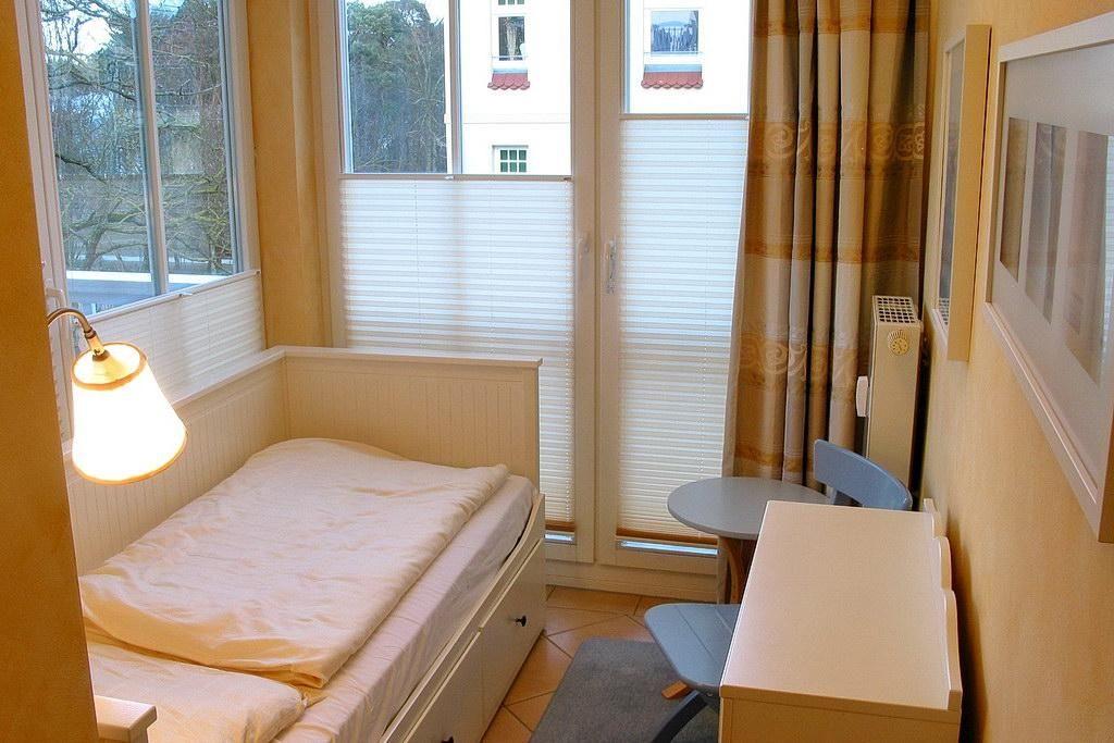 Das Nichtraucher-Apartment ist hochwertig und geschmackvoll eingerichtet und verfügt über zwei Schlafzimmer mit einem Doppelbett (2 x 80 m x 2,00 m ) bzw. einem Einzelbett (0,80 m x 2,00 m) sowie über eine Couch im Wohnbereich, ein Bad mit großzügiger Dusche und eine kleine Abstellkammer. Die helle und offen konzipierte Wohnung bietet eine großflächige Fensterfront mit Blick bis zum Meer, wenn in den Wintermonaten die Bäume der Uferpromenade ihre Blätter verlieren. Die Wohnung verfügt über eine voll ausgestattete offene Küche mit Wasserkocher, Kaffeemaschine, Toaster, Geschirrspüler und Mikrowelle mit Heißluftgarfunktion sowie über zwei Flachbild-TVs, DVD- Player, HiFi-Anlage sowie eine Büchersammlung und einen Mini-Safe. Das WLAN könnt ihr kostenfrei nutzen.
