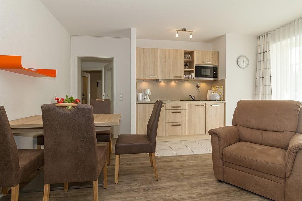 Die 69 m² große 3-Zimmer-Ferienwohnung ist für bis zu 4 Personen geeignet. Besonders hervorzuheben ist der sonnige Balkon in Süd-Lage. Hier könnt ihr erholsame Urlaubstage und laue Sommerabende verleben.