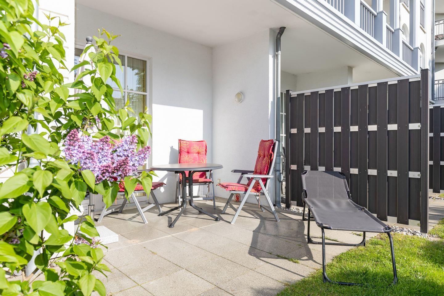 Modernes Ferienapartment mit Sonnenterrasse, nur 20 Meter vom weißen Sandstrand in Kühlungsborn entfernt.