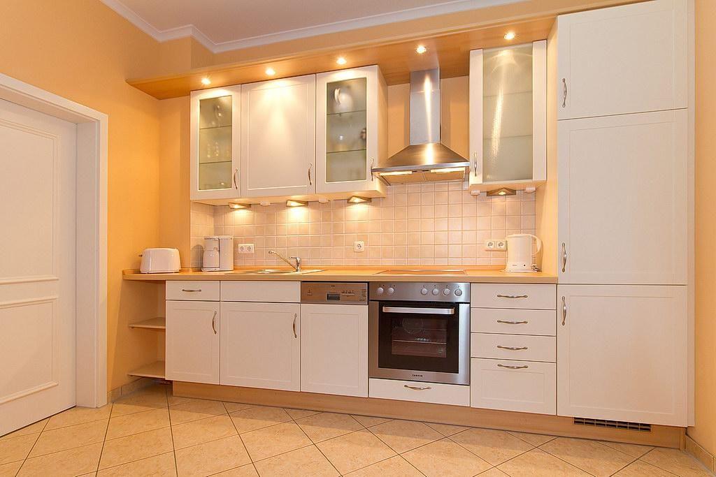 Zu dieser Nichtraucher-Ferienwohnung gehören ein Schlafzimmer mit Doppelbett (2 x 80 x 2,00 m), ein Kinderzimmer mit Etagenbett, ein gemütlicher Wohnbereich mit TV-HiFi-Anlage und DVD-Player, ein elegantes Bad mit Badewanne und Duschvorrichtung sowie Föhn und eine hübsche Loggia in Süd-Lage.
