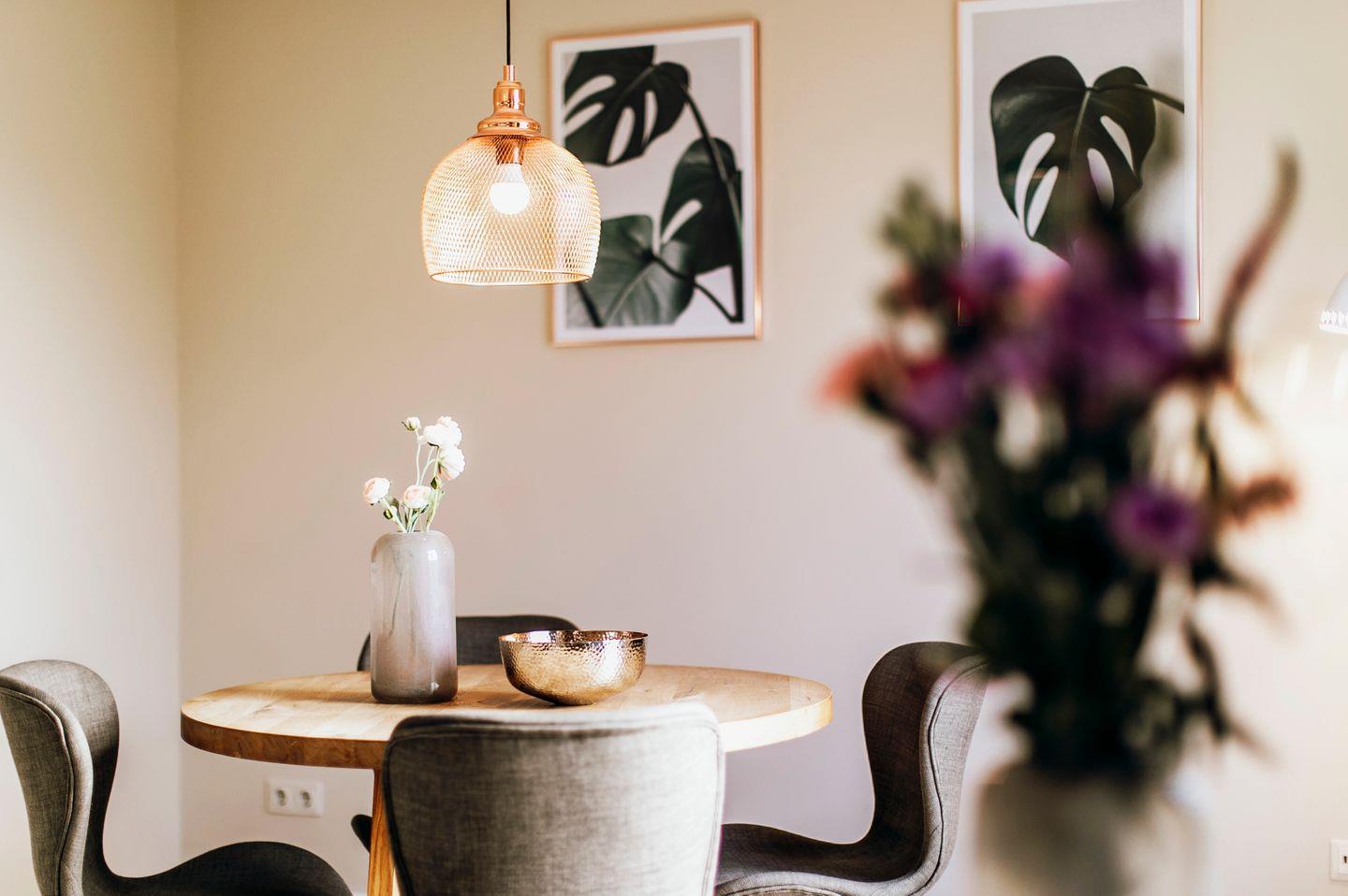 In der gesamten Wohnung wurde Laminat verlegt. Plissees und Vorhänge dienen in der Ferienwohnung als Verdunklungsmöglichkeit.
