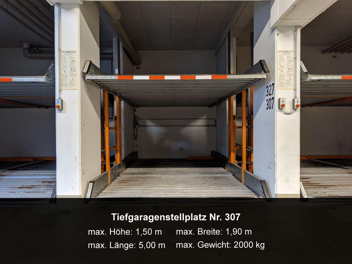 Zur Ferienwohnung gehört ein Tiefgaragenstellplatz Nr. 307 (max. Höhe 1,50 m).