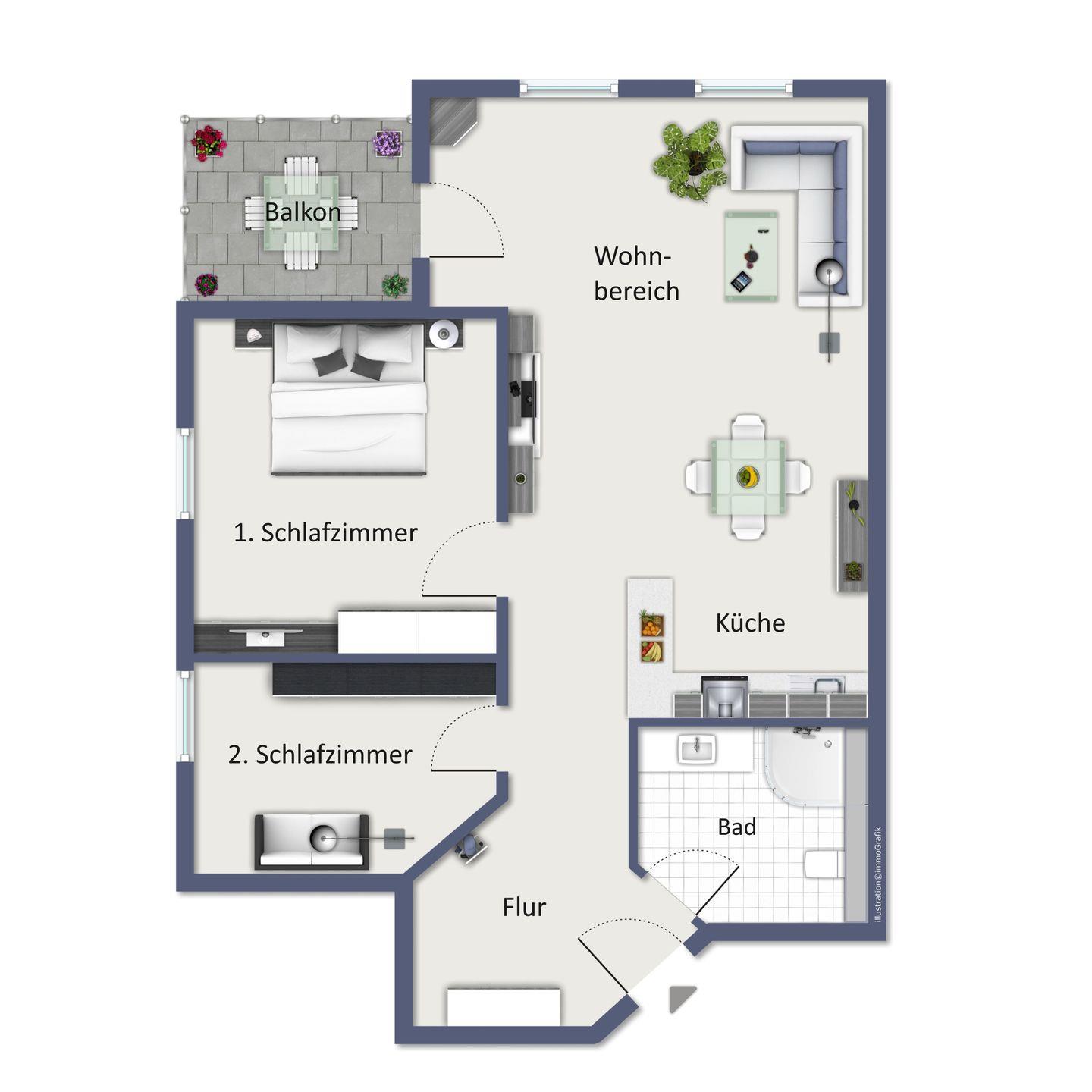 Wohnfläche 54 m²
