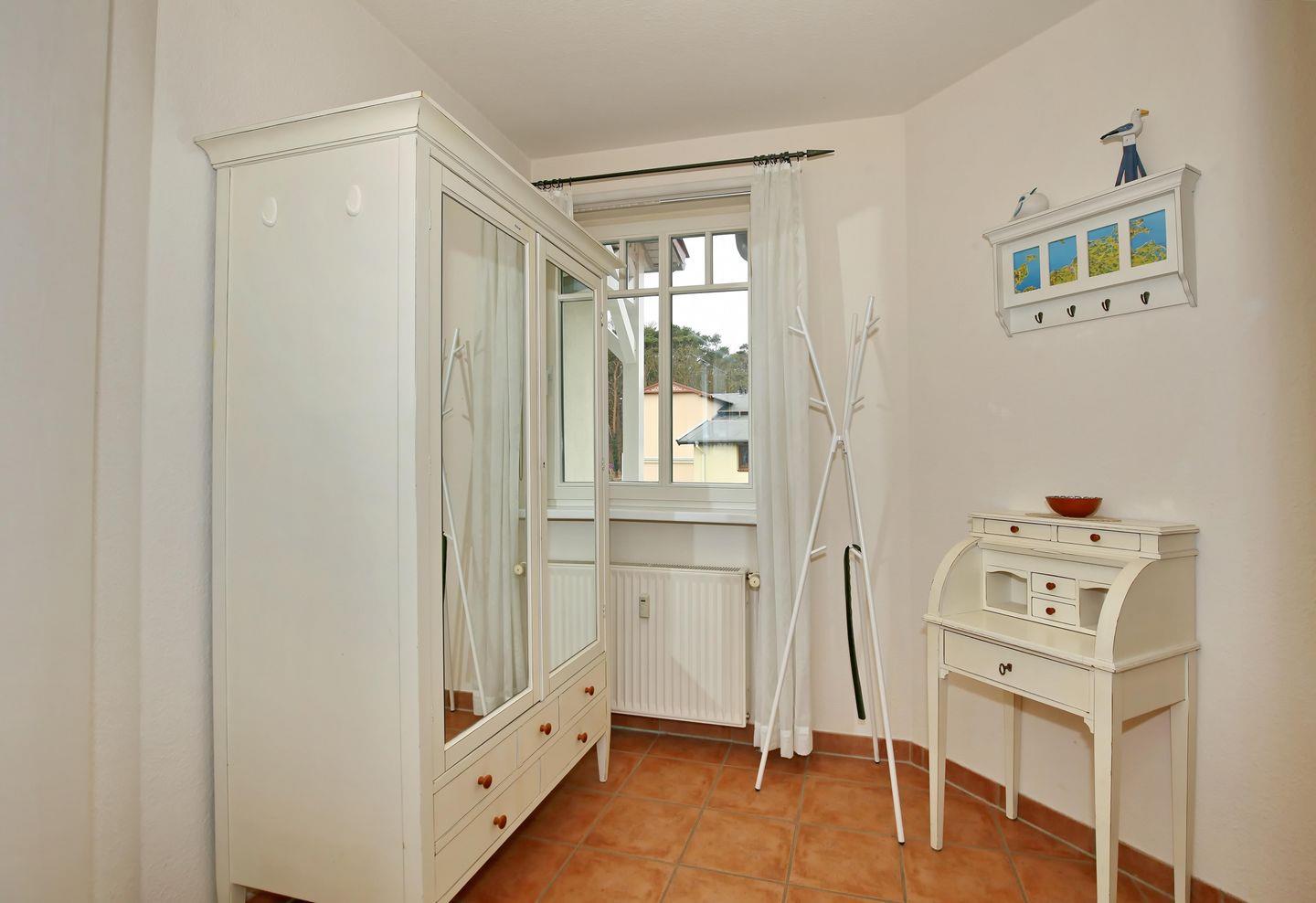 Sie liegt in der ersten Etage zur Nord-West-Seite des Hauses zentrumsnah in Kühlungsborn Ost. Über das offene Treppenhaus und einen gesonderten Etagenflur erreichst du deine Ferienwohnung mit nur wenigen Schritten. Neben einem gemütlichen Wohnbereich mit Küchenzeile erwarten dich hier zwei Schlafzimmer, ein Duschbad und ein Balkon. Bis zum weißen Sandstrand sind es nur etwa 1000 Meter.