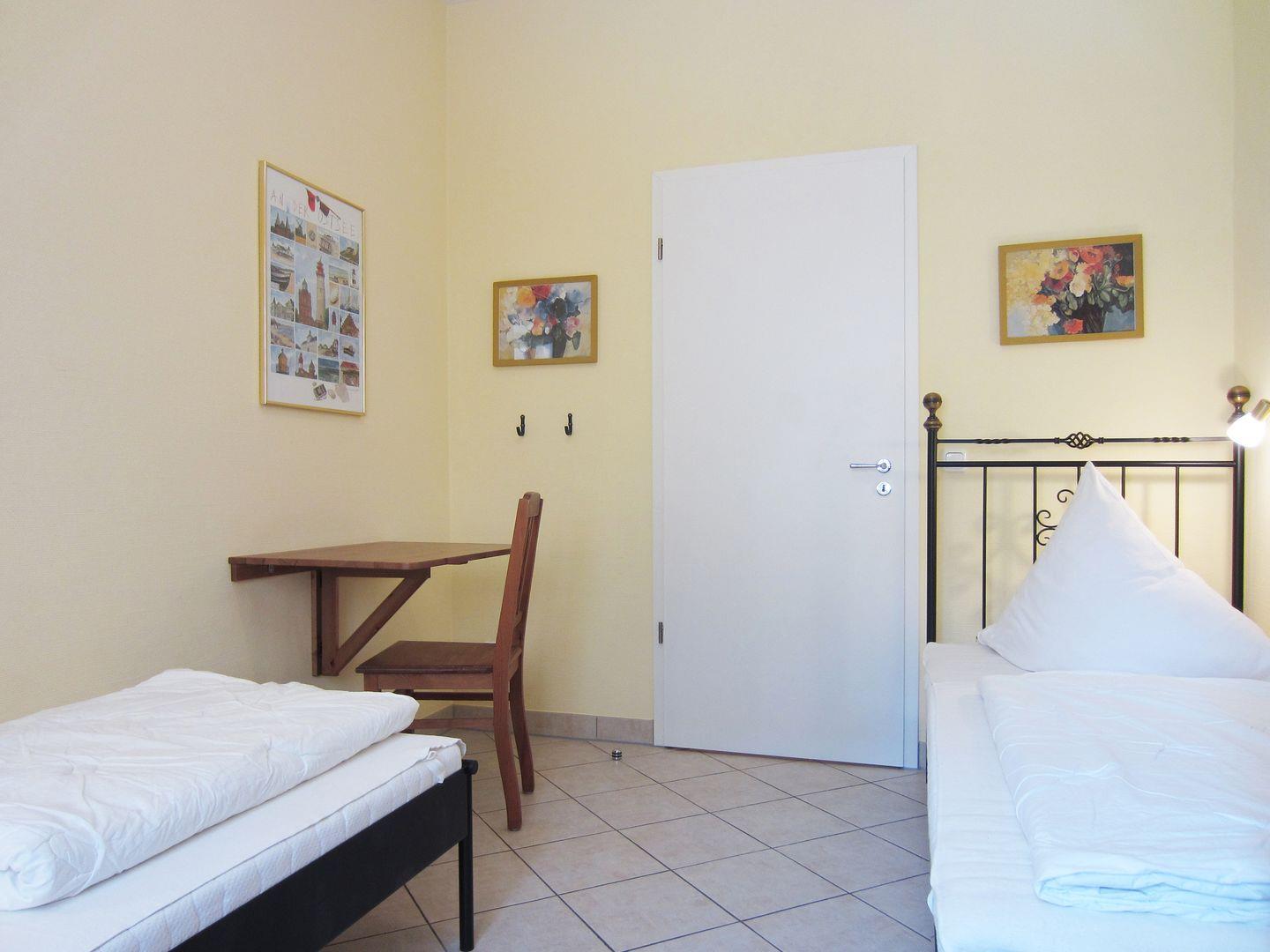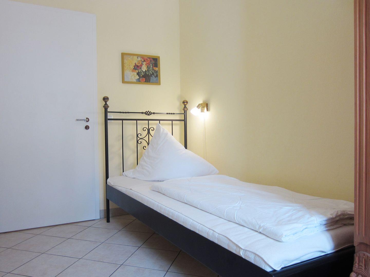 Zwei Einzelbetten befinden sich im zweiten Schlafzimmer, sowie ein 2. Kleiderschrank. Für die ganz Kleinen gibt es ebenfalls ein Kinderreisebett und einen Kinderhochstuhl.