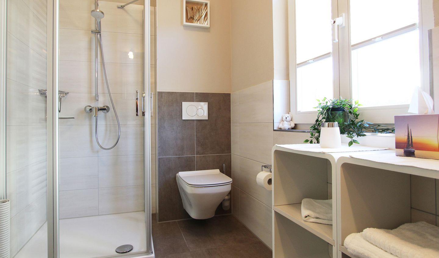 Das geräumige Duschbad verfügt über ein Fenster.