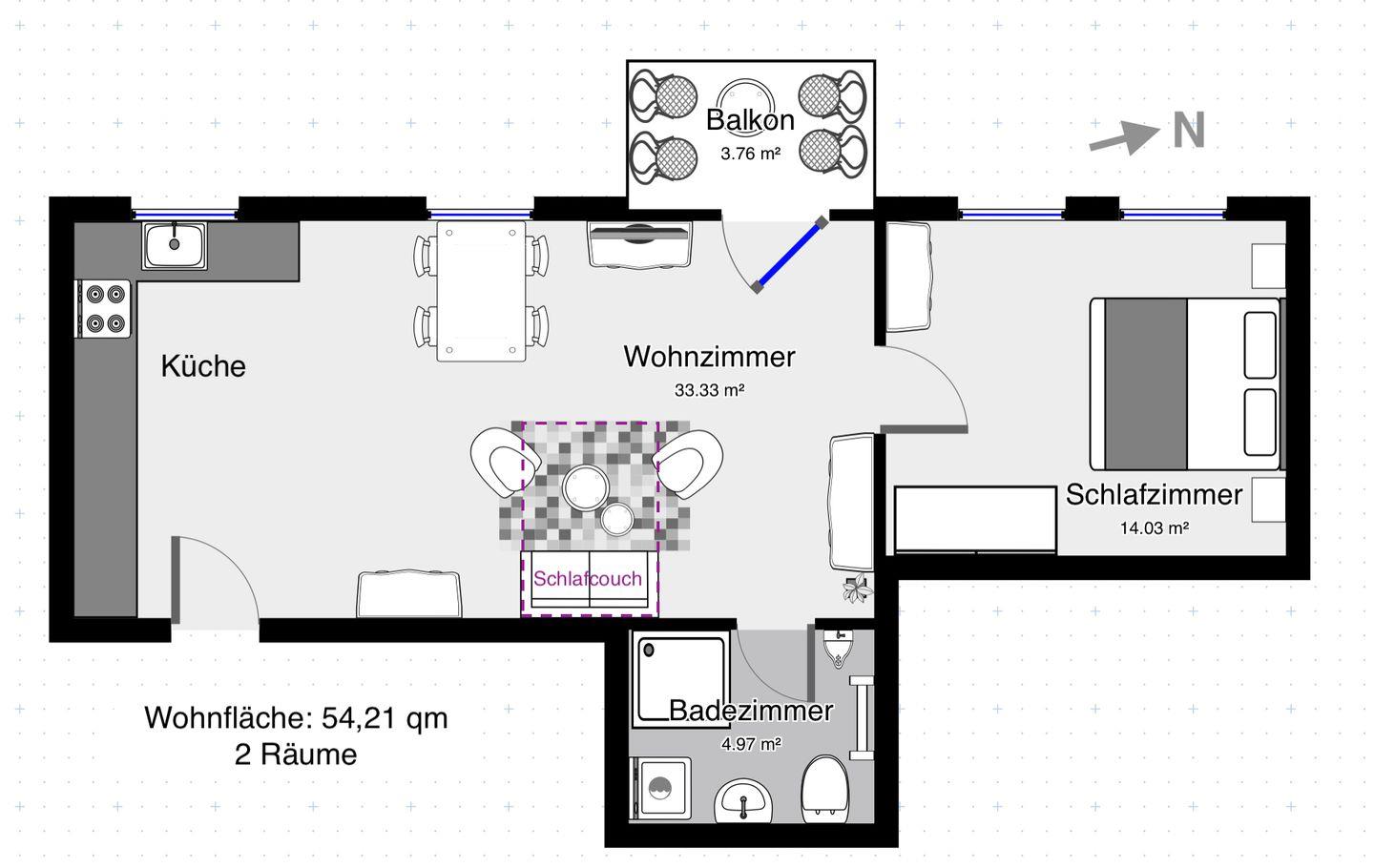 Wohnfläche 54 m²
