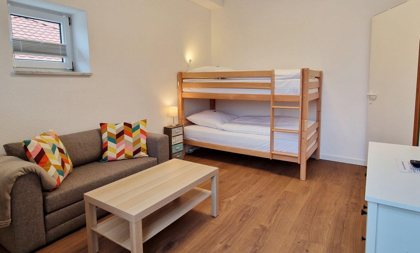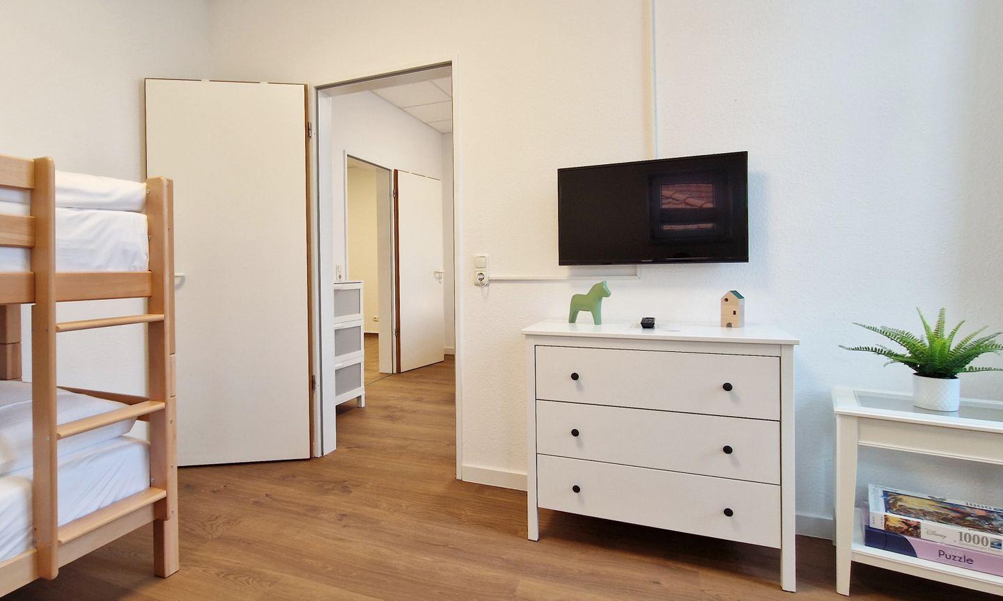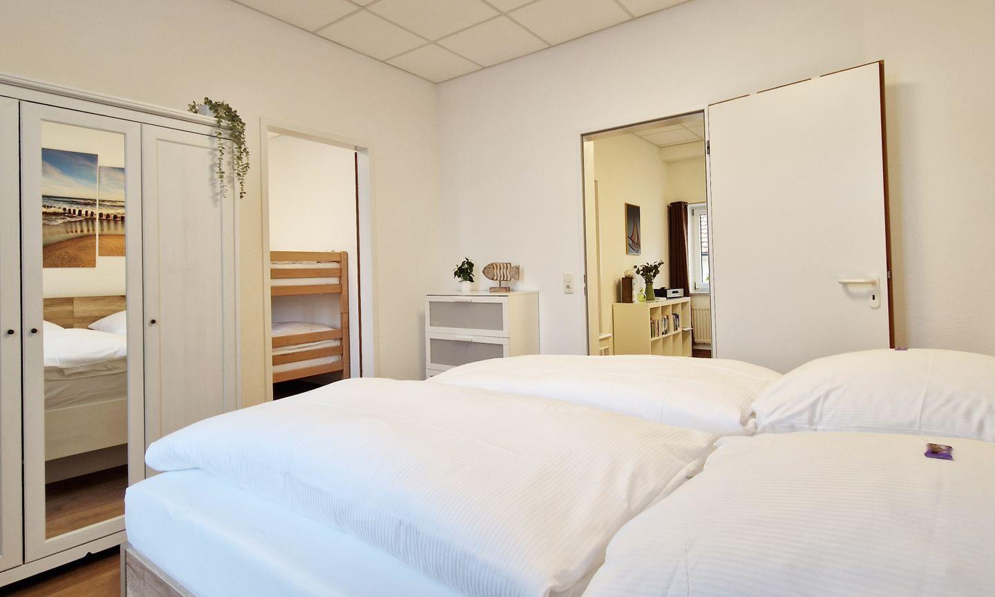 Die Wohnung verfügt über 2 Schlafzimmer mit Doppelbett und Kleiderschrank, ein Schlafzimmer mit Etagenbett und 2. Smart-TV, sowie auch der Ausklappschlafcouch.