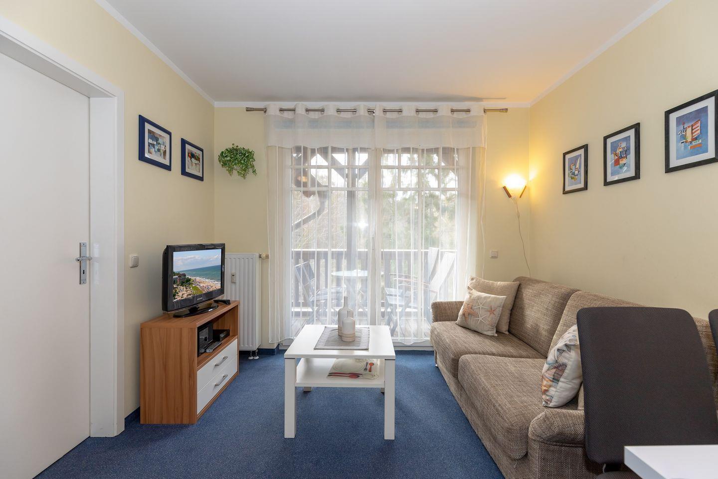 Die 36 m² große 2-Zimmer-Ferienwohnung bietet Platz für bis zu 4 Personen. Besonders hervorzuheben ist der schöne, überdachte Balkon und die erstklassige Lage der Apartmentanlage an der Uferpromenade und in direkter Nähe zum weißen Ostseestrand - Meeresrauschen inklusive.