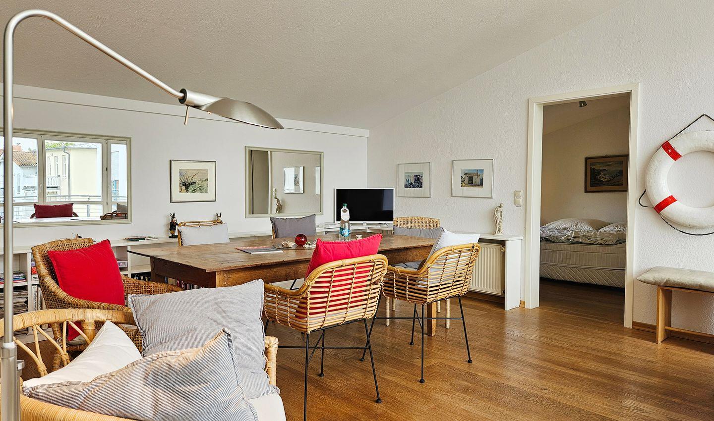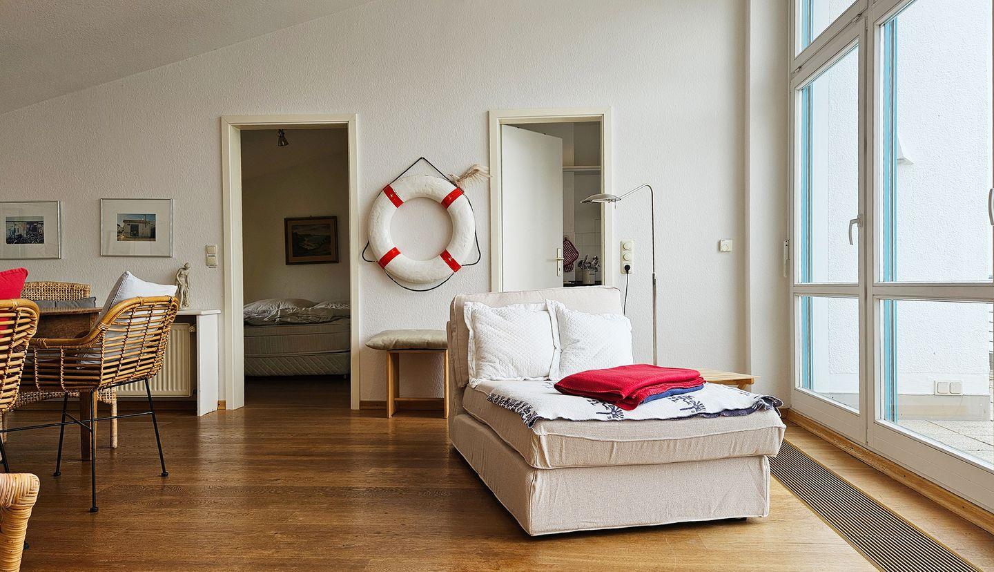 Das Wohnzimmer ist mit einem bequemen Sessel, Satelliten-TV (25–34 Zoll) sowie einer Auswahl an Büchern ausgestattet und lädt zu entspannten Stunden nach einem erlebnisreichen Tag ein. WLAN steht Ihnen in der gesamten Unterkunft zur Verfügung. Vom Balkon der Wohnung genießen Sie die frische Ostseeluft und können die einzigartige Atmosphäre des Ostseebades auf sich wirken lassen.