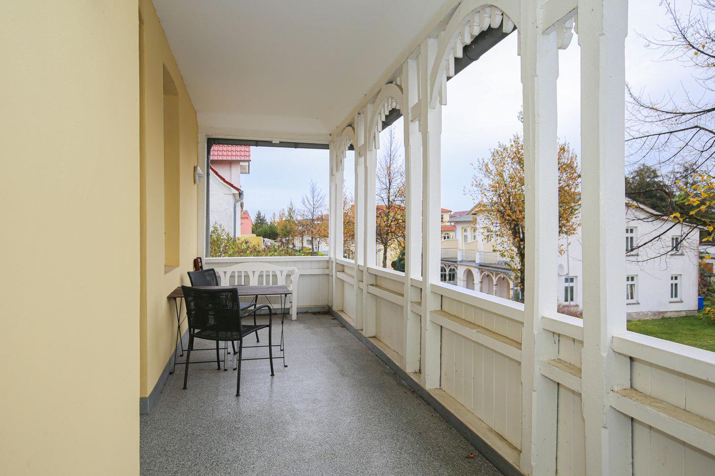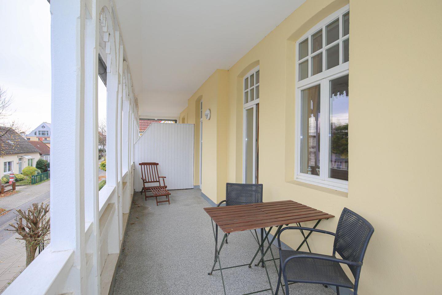 Die Ferienwohnung Nr. 04 in der strandnahen Ferienanlage Villa Baade in Kühlungsborn-West ist eine 2-Zimmer-Wohnung für bis zu 3 Personen. Die Wohnung liegt im 1.OG und hat einen überdachten Balkon.