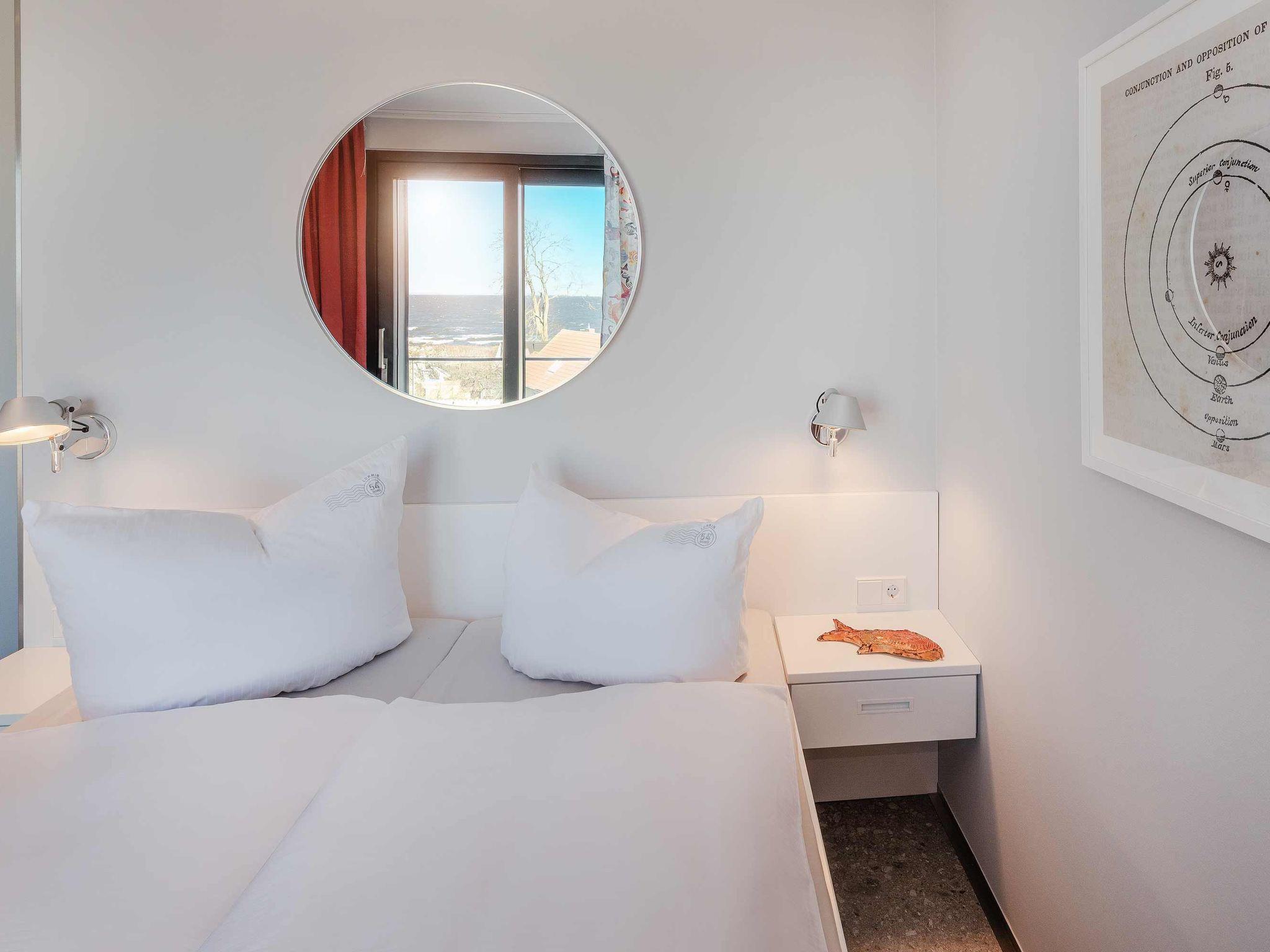 In unseren gemütlichen Kojen, schläft man wie in den Dünen und genießt vom Bett aus einen einzigartigen Blick auf die Weite der Ostsee.