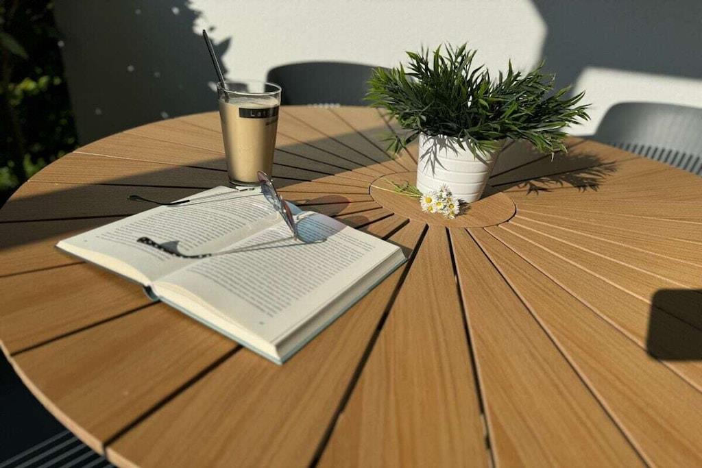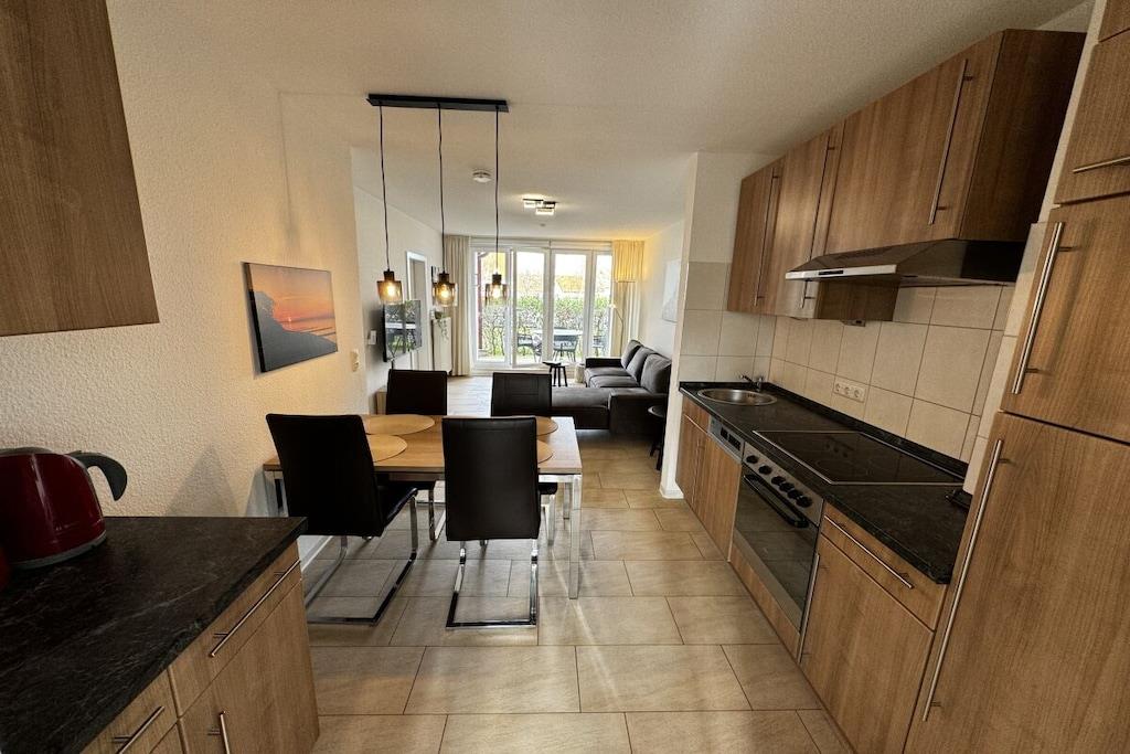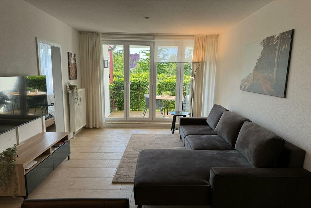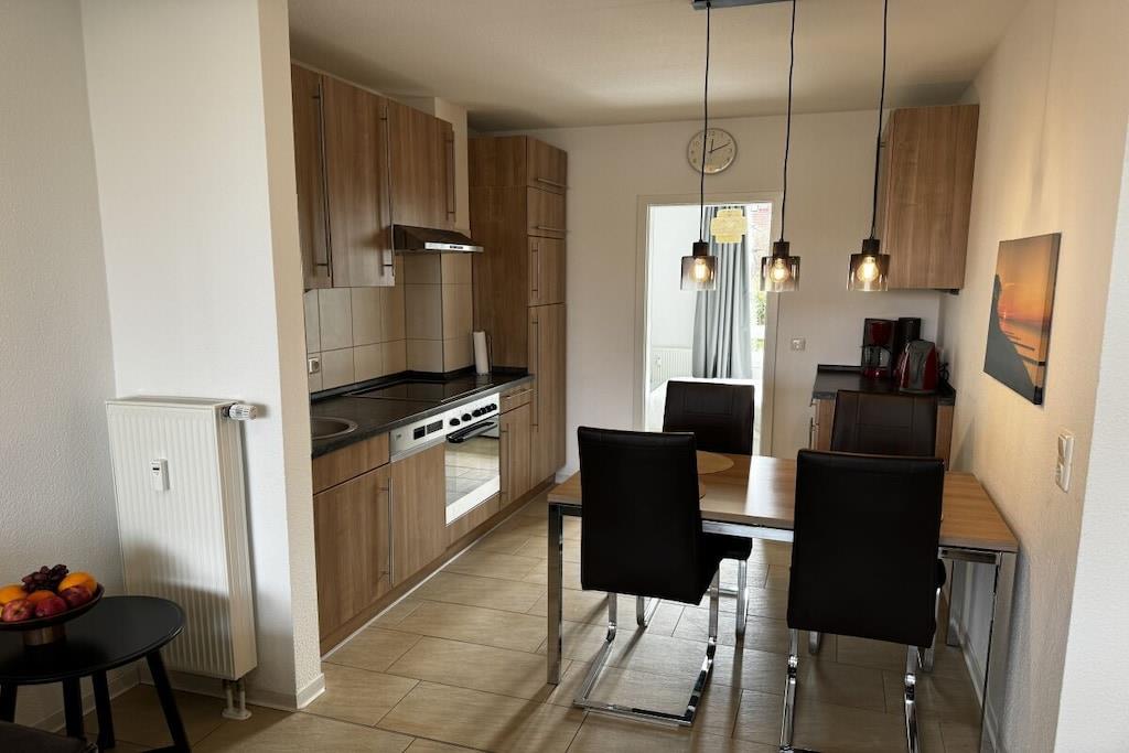 Modern eingerichtete Ferienwohnung Strandläufer nahe Ostseestrand Nienhagen mit Terrasse und WLAN.