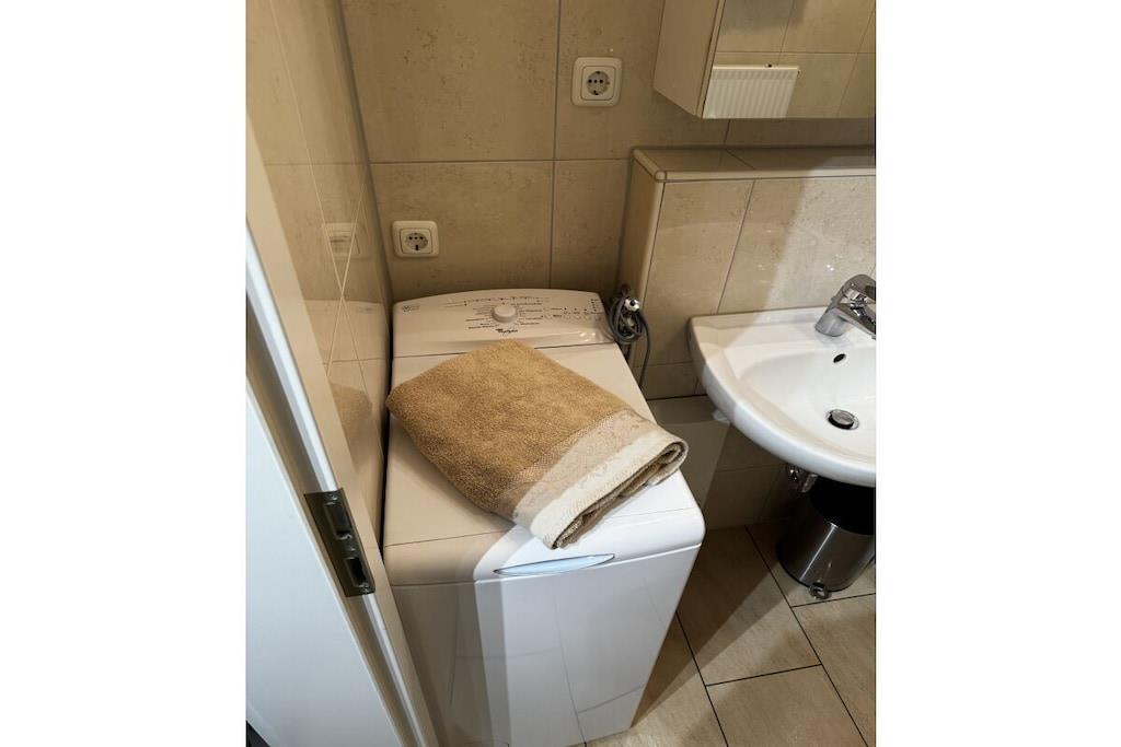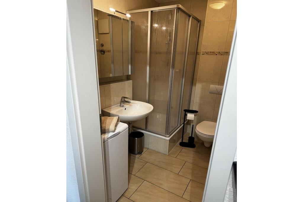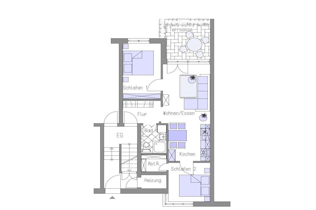 Parterre: (Eingangshalle(, , Toilette, Hochstuhl), offene Küche(, , Kochnische, TV, Esstisch, Herd, Blu-ray-Player, Kochplatte, Wasserkocher, Toaster, Kochherd, Kaffeemaschine, Backofen, Spülmaschine, Kühlschrank, Tiefkühlschrank), Schlafzimmer(, , Doppelbett), Schlafzimmer(, Doppelbett), Badezimmer(, Toilette, Dusche, Waschbecken, Föhn), Abstellraum(, , Trockner, Bügelbrett, Bügeleisen, Trockenschrank)) , , , , Internet, Internet, Trockner, Waschmaschine, Heizung, Terrasse(Gartenmöbel), Parkplatz, Bügelbrett, Bügeleisen, Trockenschrank