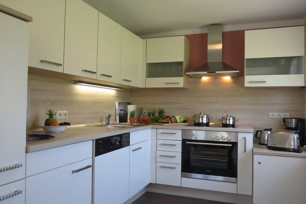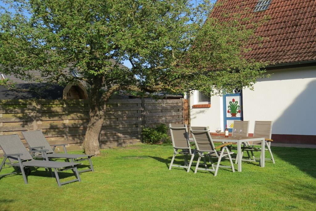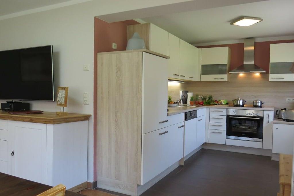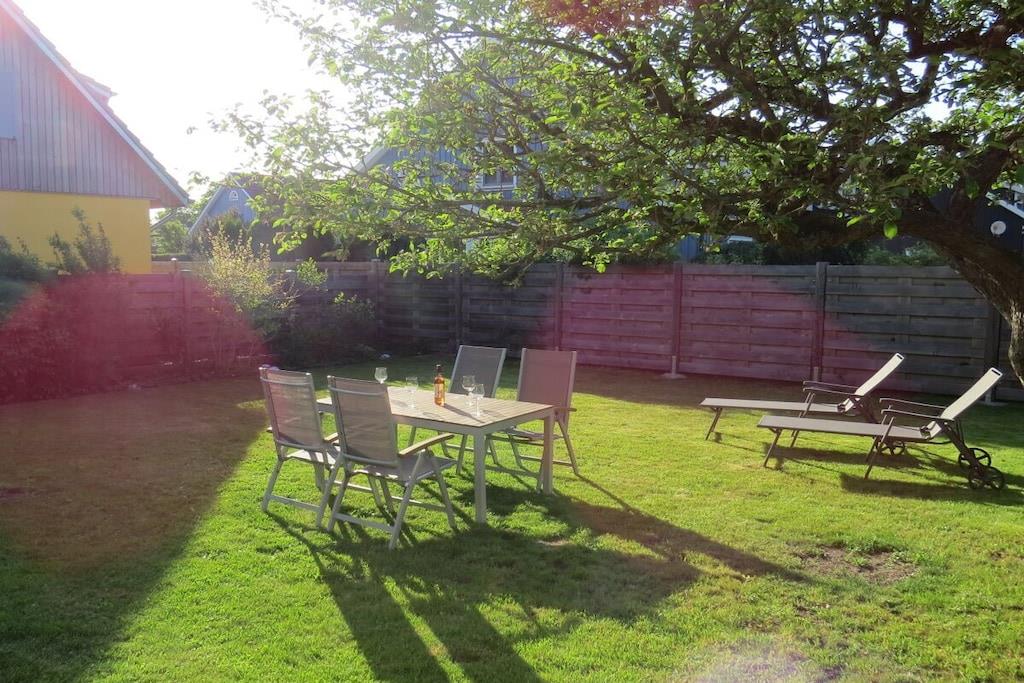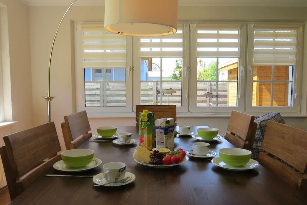 Genießen Sie die offene Küche mit umfangreicher Ausstattung. Eine Waschmaschine steht zur Verfügung. Das moderne Badezimmer ist mit einer großzügigen Dusche und WC ausgestattet. In 2 Schlafzimmer finden Sie einen erholsamen Schlaf. Im kleinen Schlafzimmer haben Sie die Wahl zwischen zwei Einzel- oder einem Doppelbett. Im großen Schlafzimmer (inkl. TV) lädt ein Doppelbett zum Kuscheln ein. Entspannen Sie in unserem Wohn- und Esszimmer. Neben genügend Büchern, Spielen und auch Spielsachen für Klein und Groß, sind mit unserem Sat-TV umfangreiche Sender vorhanden. Im Außenbereich gibt es eine Wiese mit Gartenmöbeln und Holzkohlegrill. Bitte beachten Sie, dass wir nur 1 Haustier aufnehmen (keine Haustiere in der Hauptsaison).