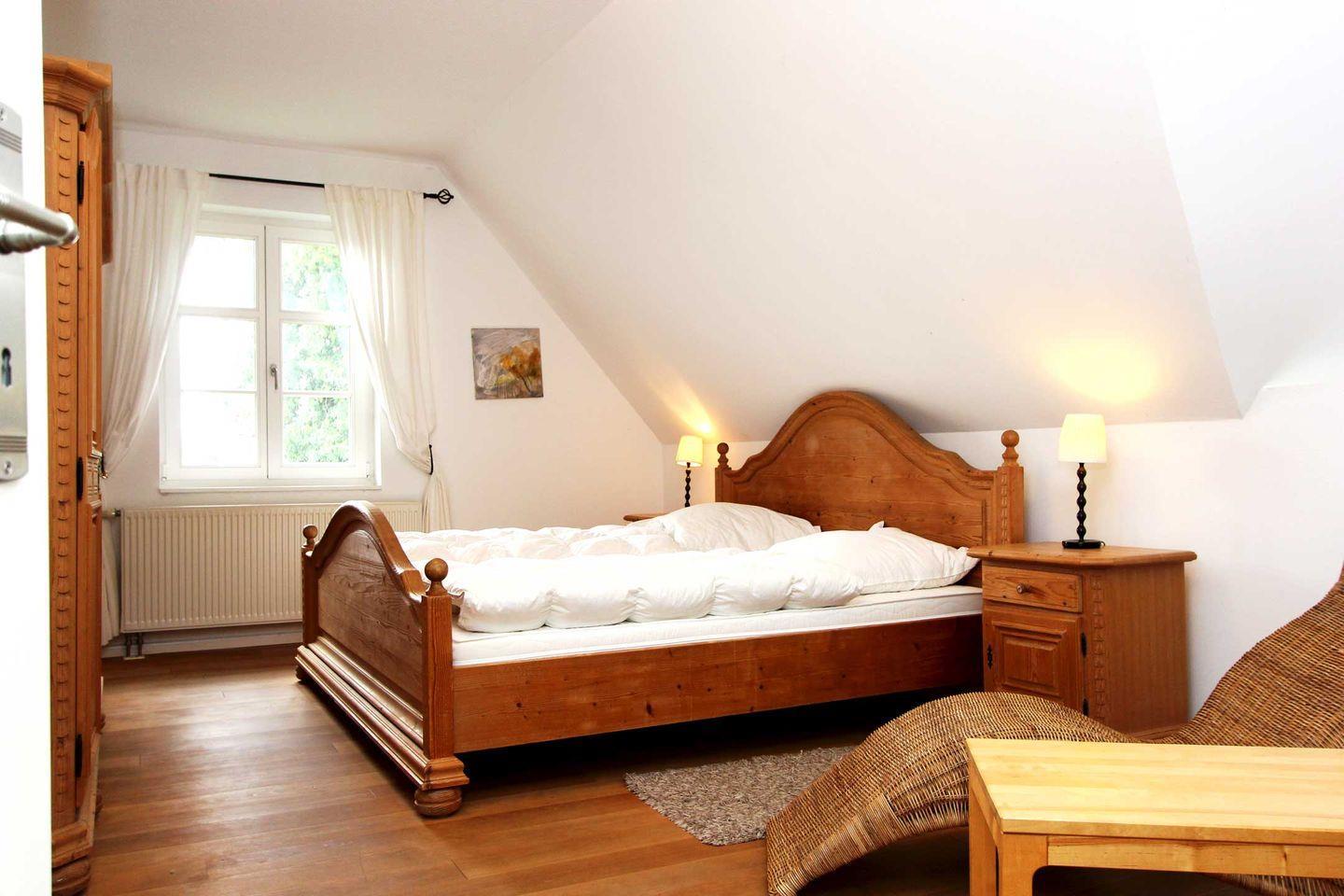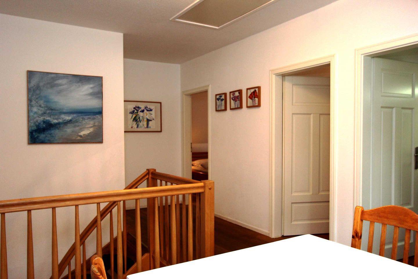 Über die Holztreppe gelangen Sie in das Obergeschoss, welches über 3 weitere Schlafzimmer mit jeweils einem Doppelbett verfügt. Das helle Duschbad, ein Gäste-WC und ein großer Tisch samt Stühlen im Flur runden dieses Ferienhaus für den perfekten Urlaub mit Freunden oder in großer Familie ab.