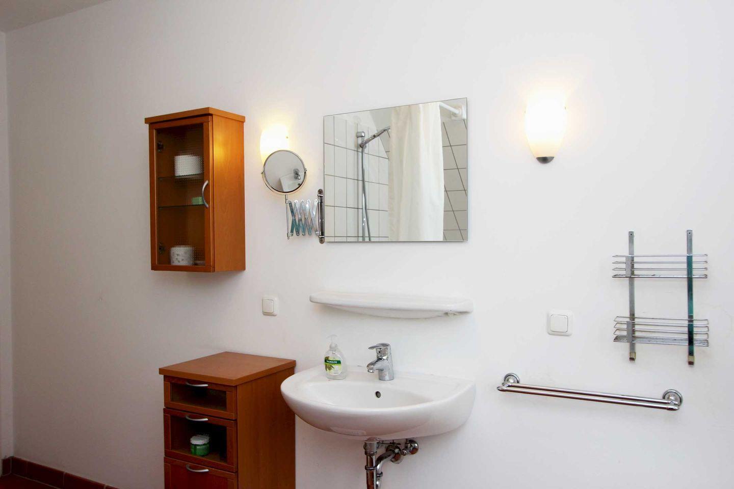 Über die Eingangstür betreten Sie den großen Flur, von dem aus Sie in das Schlafzimmer mit Doppelbett und das Duschbad mit der Sauna gelangen. Die Sauna verfügt über einen Münzeinwurf. Durch eine weitere Tür gelangen Sie in den großzügigen Wohn- und Essbereich mit gut ausgestatteter, angrenzender Küchenzeile. Durch die Fensterfront über die gesamt Westseite des Hauses haben Sie den ganze Tag über viel Licht im Haus und einen wunderschönen Blick in den paradiesischen Garten.