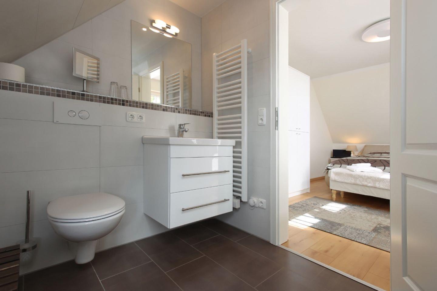 Der Lebensmittelpunkt des Hauses ist der großzügige Wohn- und Essbereich im Erdgeschoss mit Kamin. Die hochwertig ausgestattete und zum Wohnzimmer hin offene Küche lässt keine Wünsche offen. Ein großer Esstisch und eine gemütliche Couch komplettieren den Wohnkomfort. Das Haus verfügt im Erdgeschoss über 1 Schlafzimmer und 1 Badezimmer mit Dusche und angrenzender Sauna. Im Obergeschoss befinden sich die 3 Schlafzimmer. Ein Schlafzimmer verfügt über ein Boxspringbett und die anderen beiden Schlafzimmer sind mit je zwei Einzelbetten ausgestattet. Eins der Schlafzimmer verfügt über ein separates Bad. Im Obergeschoss steht Ihnen ein weiteres Gemeinschaftsbadezimmer zur Verfügung.