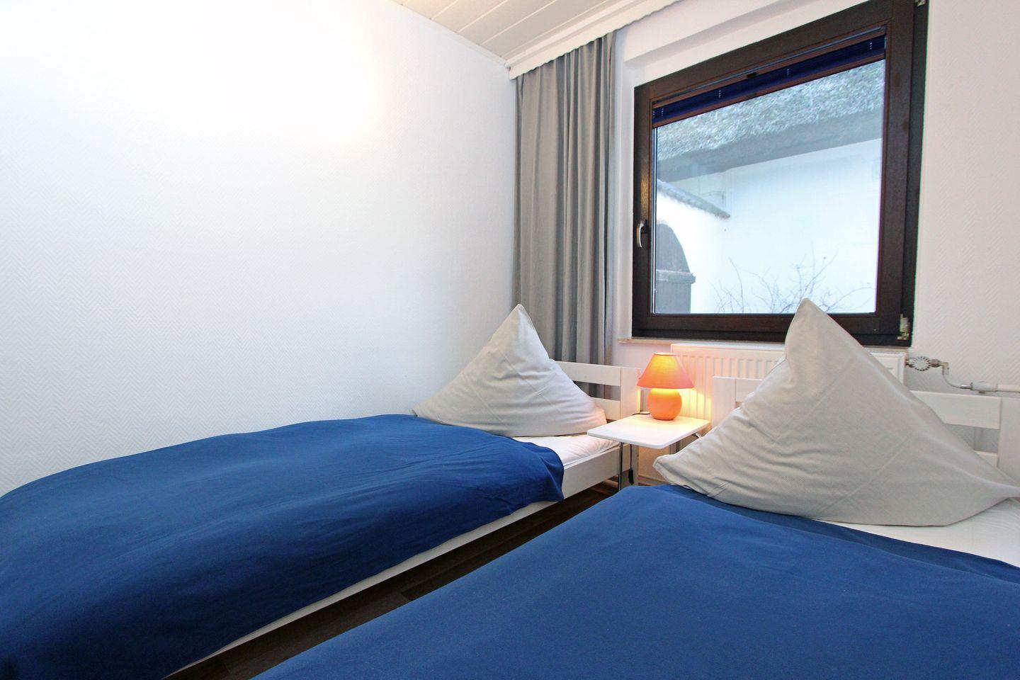 Die Erdgeschosswohnung bietet auf ca. 27 m² ausreichend Platz für 2 Personen mit gemütlichem Wohnzimmer, Schlafzimmer mit Doppelbett, Duschbad und einer Pantryküche. Im Wohnzimmer befindet sich eine einladende Fernsehcouch und ein Esstisch. Das Schlafzimmer verfügt über 2 Einzelbetten.