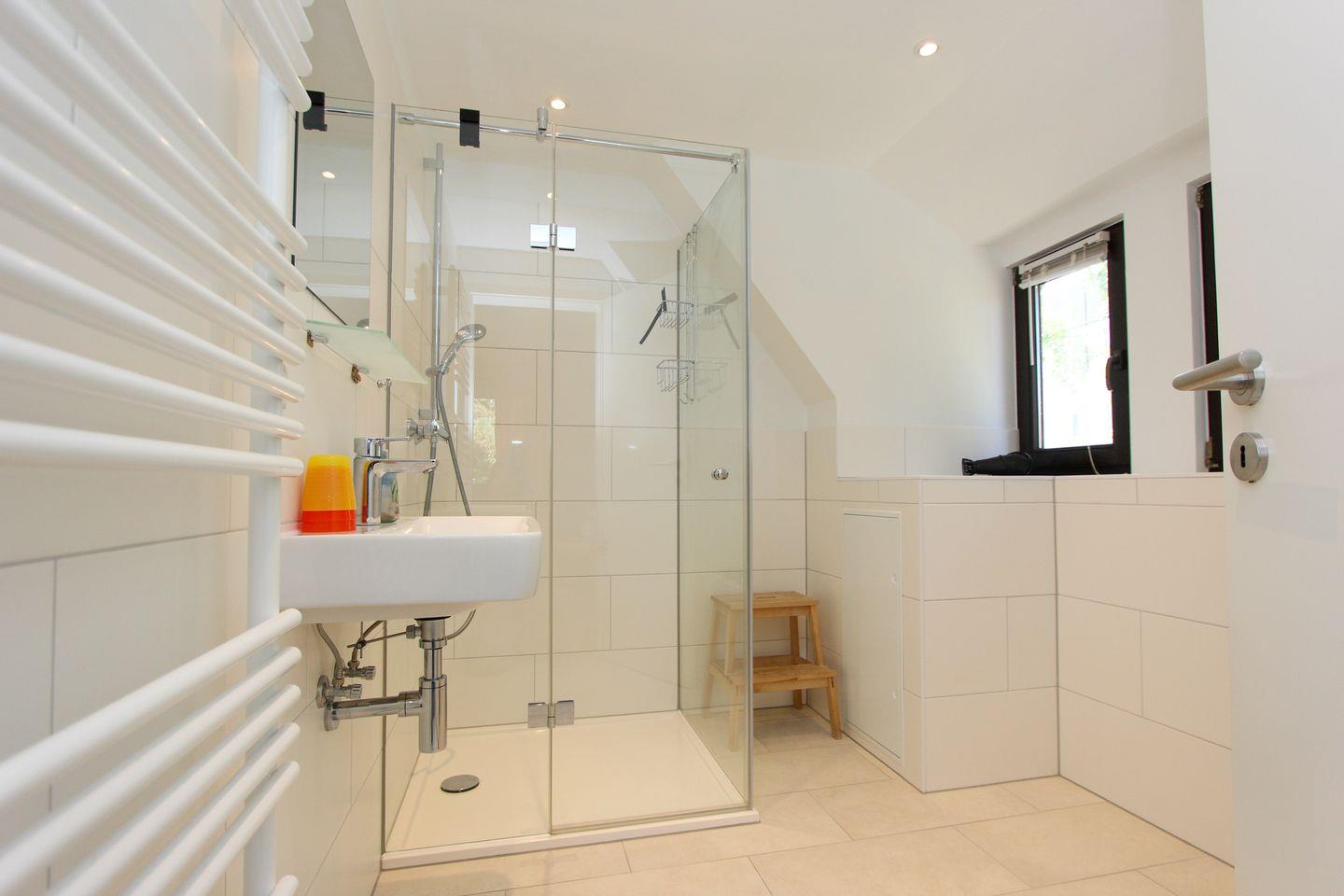 Die Dachgeschoss-Wohnung mit 45 m² betreten Sie ebenerdig über eine Holztreppe im Innenbereich. In der Wohnung empfängt Sie ein einladender Wohnraum mit moderner Küchenzeile, ein großes Schlafzimmer und ein Duschbad. Das Schlafzimmer verfügt über ein Doppelbett und ein ausziehbares Einzelbett für max. 2 Kinder. Im Wohnzimmer befinden sich eine gemütliche Sitzgruppe mit TV sowie ein Esstisch mit vier Stühlen. Die Küchenzeile ist bestens ausgestattet, damit Sie auch im Urlaub nichts vermissen. Im Erdgeschoss steht Ihnen eine eigens nutzbare Terrasse zur Verfügung. Ein PKW-Stellplatz und kostenloses WLAN ist vorhanden.