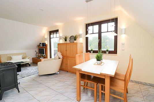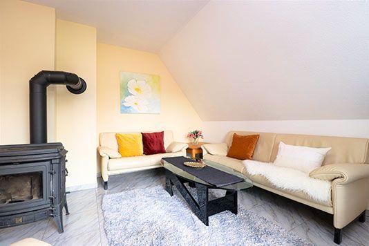 Gemütliche Maisonette-Ferienwohnung in ruhiger Lage mit Balkon und Kaminofen für erholsame Urlaubstage.