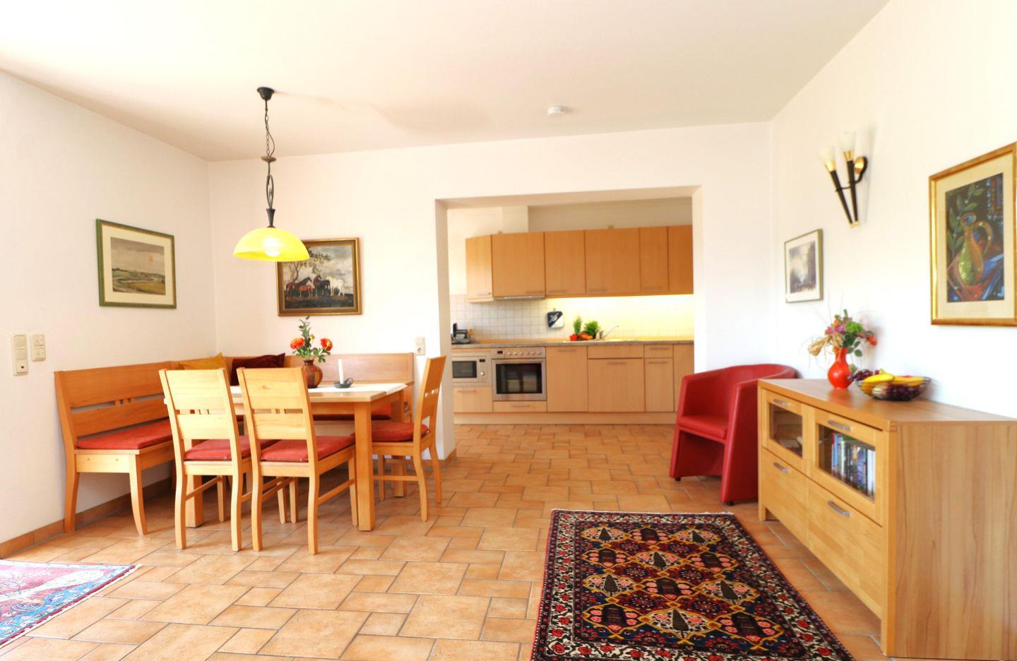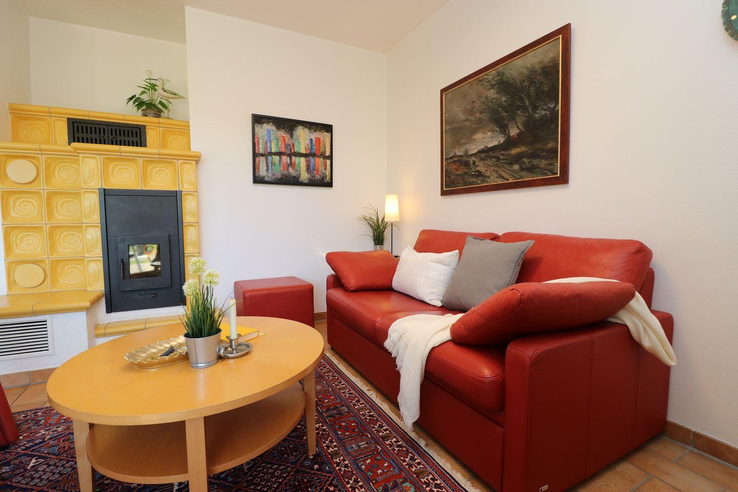 Dieses 65 m² große Appartement im Erdgeschoss bietet Platz für bis zu 4 Personen und eignet sich ideal für einen entspannten Ostseeurlaub. Die Unterkunft kombiniert Komfort und Gemütlichkeit und lädt dazu ein, sich nach einem erlebnisreichen Tag zu erholen. Das geräumige Wohnzimmer verfügt über eine integrierte Küchenzeile, die es Ihnen ermöglicht, Mahlzeiten nach Ihrem Geschmack zuzubereiten. Der Kaminofen sorgt an kühleren Tagen für eine angenehme Wohlfühlatmosphäre und behagliche Wärme. Die Süd-Terrasse bietet einen wunderschönen Blick über die umliegende Landschaft und lädt dazu ein, laue Sommerabende bei einem Drink oder einer Mahlzeit zu genießen. Es gibt zwei Schlafzimmer, die jeweils mit einem Doppelbett ausgestattet sind, sodass Sie erholsame Nächte verbringen können. Das moderne Bad verfügt über eine Dusche und ein WC, und zusätzlich steht Ihnen eine Waschmaschine zur Verfügung – praktisch für längere Aufenthalte. Haustiere sind in diesem Appartement nicht gestattet, und das Rauchen ist ebenfalls nicht erlaubt. WLAN steht Ihnen jedoch kostenlos zur Verfügung, sodass Sie mit Ihren Lieben in Kontakt bleiben können. Mit seiner ruhigen Lage und der gemütlichen Ausstattung ist dieses Appartement der perfekte Rückzugsort für Ihren nächsten Urlaub an der Ostsee.