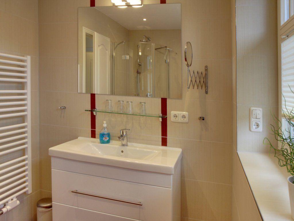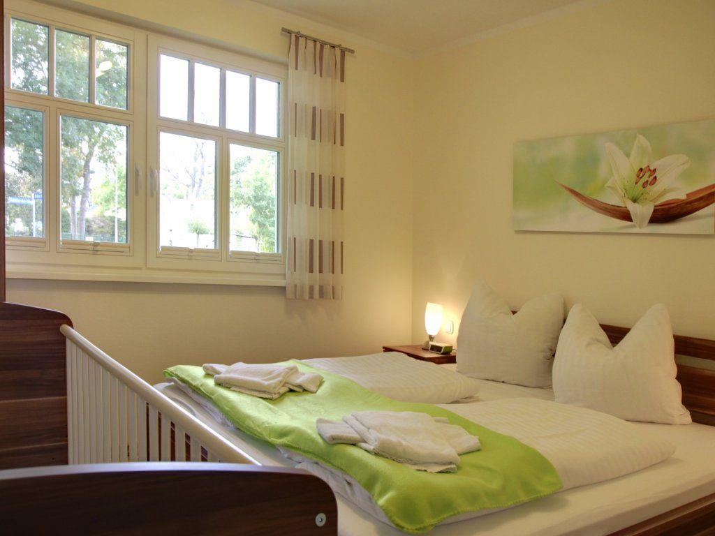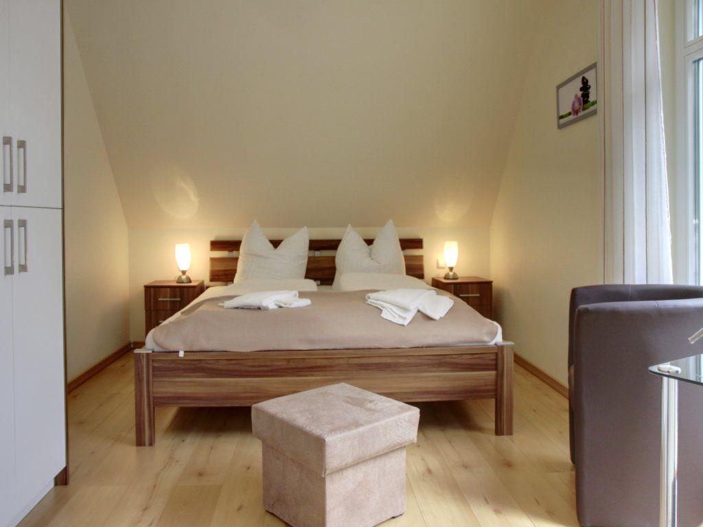 1 Schlafzimmer mit Doppelbett (1,80x2,00m), TV, verstellbare Lattenroste, eigenes Bad mit Wanne/ebenerdiger Dusche