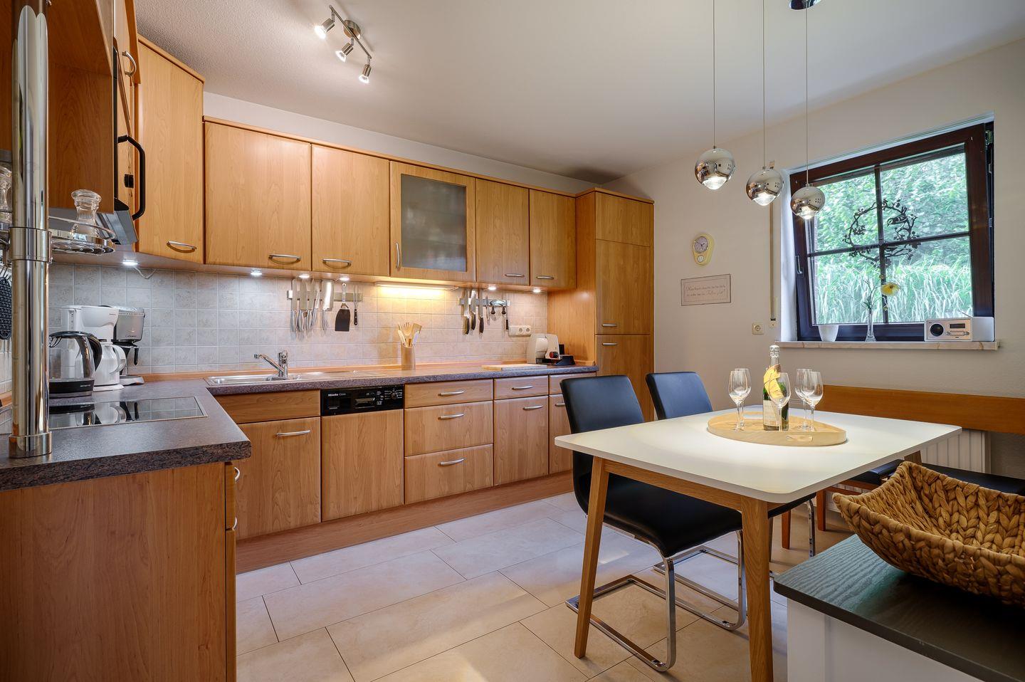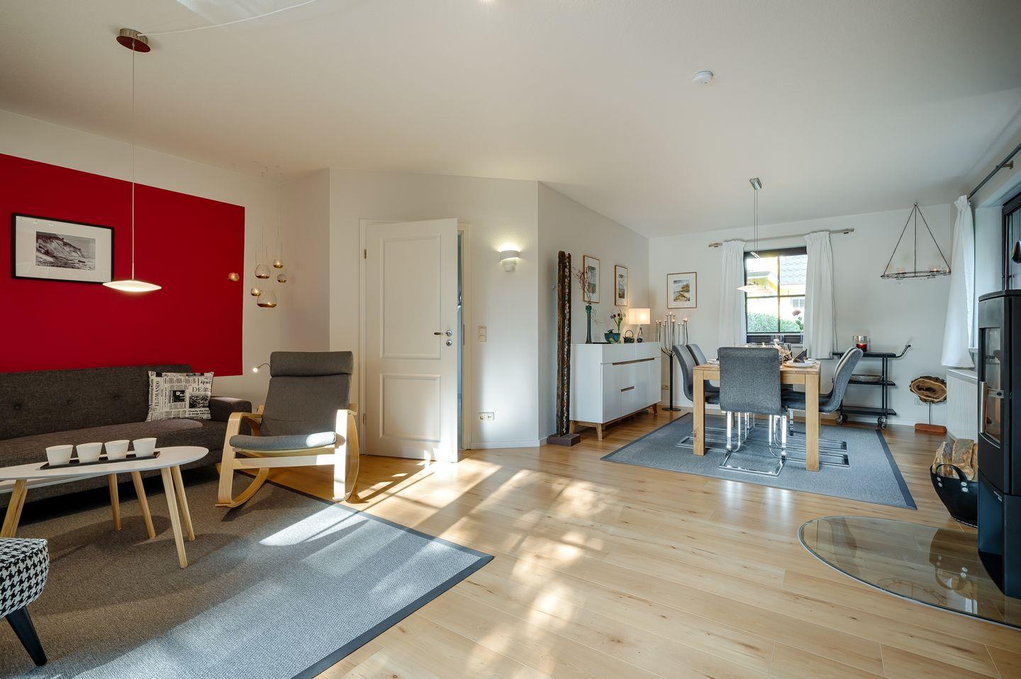 Wohn-/Esszimmer mit Schlafcouch, Esstisch für 6 Personen
