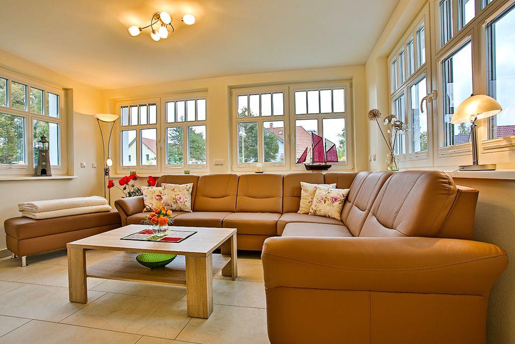 Darßveranda mit Eckledersofa und TV