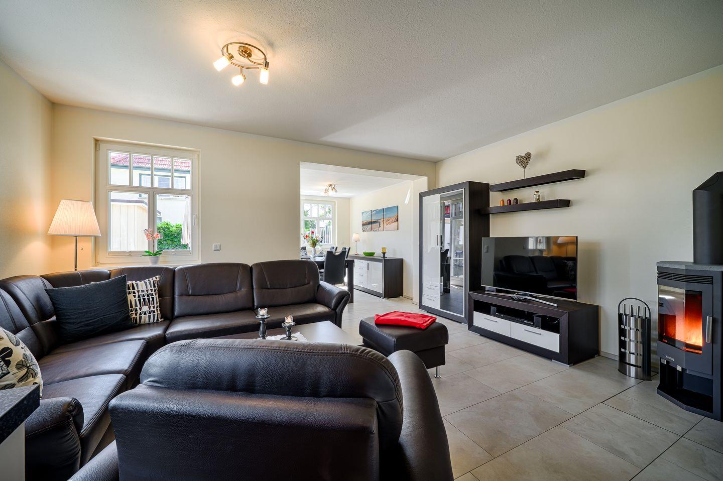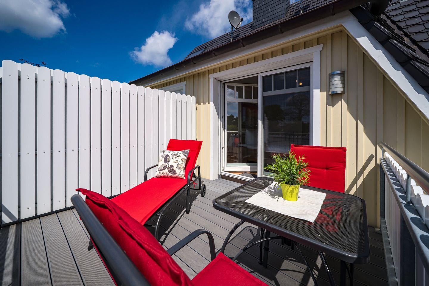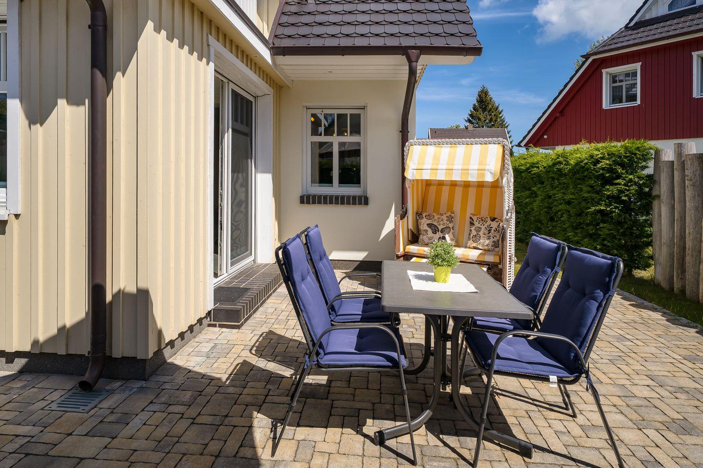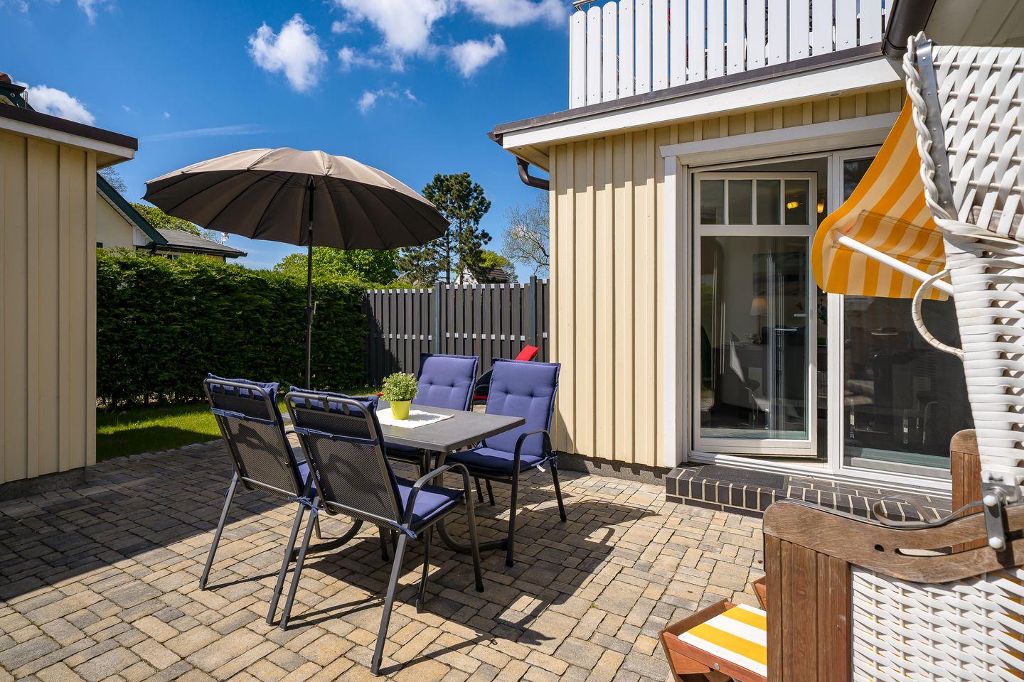Moderne Ferienhaushälfte mit Sauna, Dachterrasse und Wintergarten in Ostseebad Prerow, ideal für Familien und erholsame Tage.
