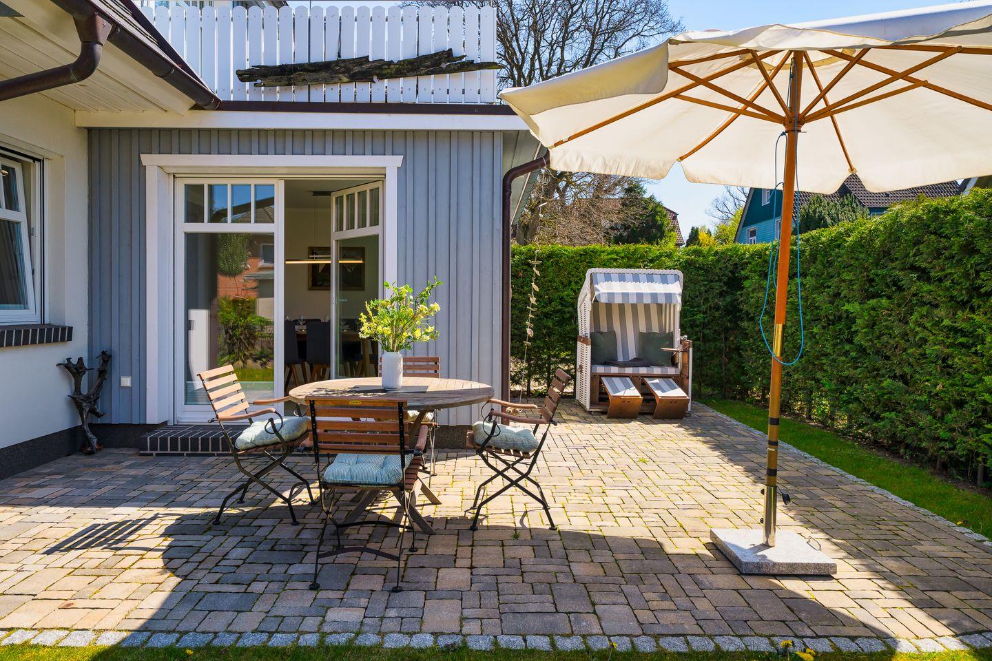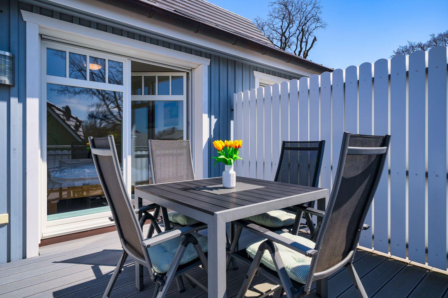 Ferienhaushälfte Meeresleuchten in Ostseebad Prerow mit Sauna, Dachterrasse und moderner Ausstattung für erholsame Urlaubstage.
